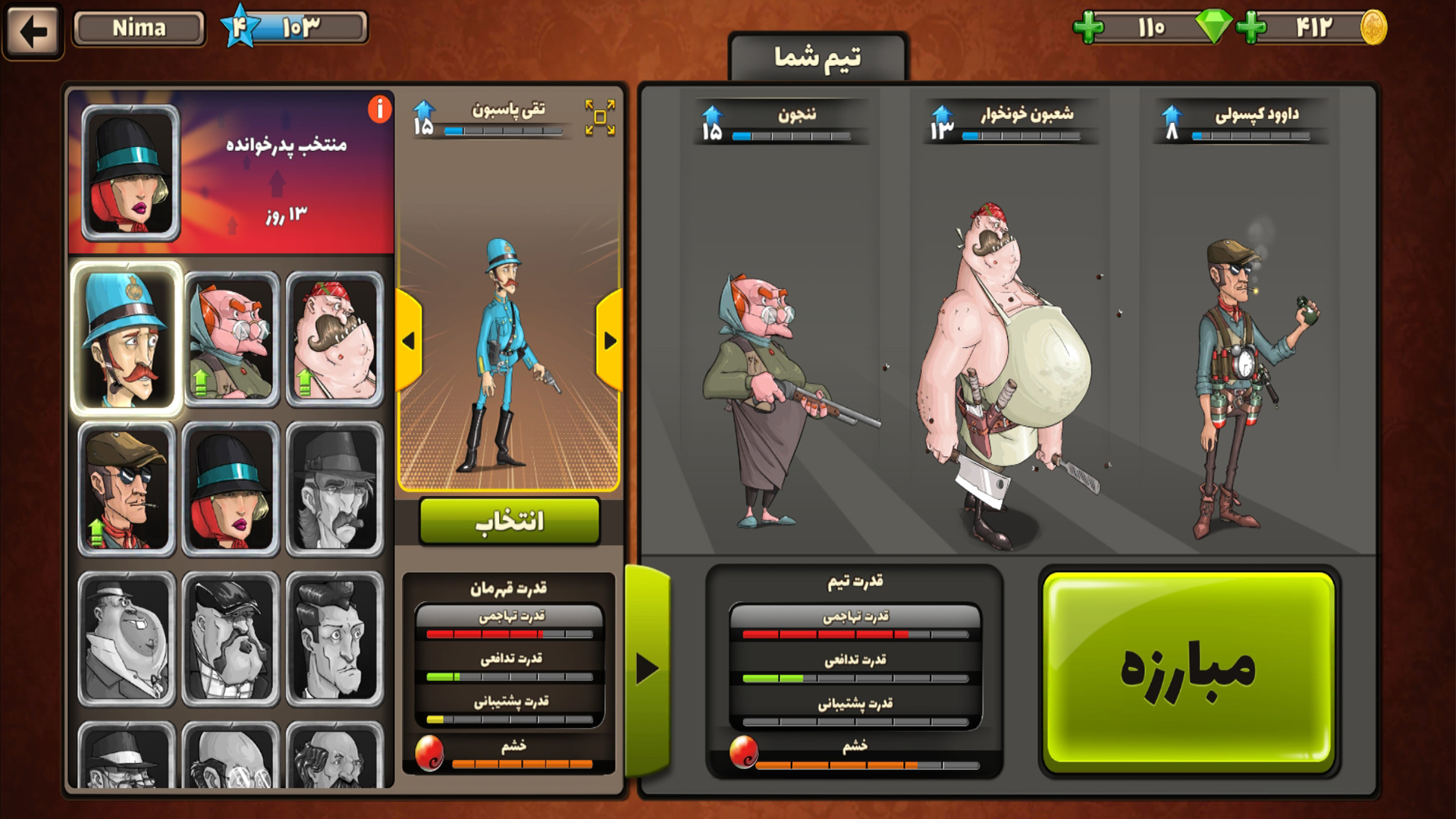 پیشتر اشاره کردیم که خشم چهارمین قدرت هر نیرو در این بازی بوده و تنها زمانی فعال میشود که دشمن شما ضربه بیشتری به شما وارد کرده باشد. در این صورت بخش خشم تیم شما به صددرصد رسیده و میتوانید از این نیروی ویژه استفاده کنید که معمولا قدرتی بسیار بیشتر از حرکات معمولی شما دارد. نیروهای تدافعی و پشتیبانی نیز از این حرکت ویژه برخوردار بوده و میتوانند بهتر از حالت معمول به کمک شما و نیروهایتان بیایند. در این بخش باید از زامبولی، تقی پاسبون، هوشنگ فلش بنگ و ننجون بهعنوان پر خشم ترین نیروها نام برد.