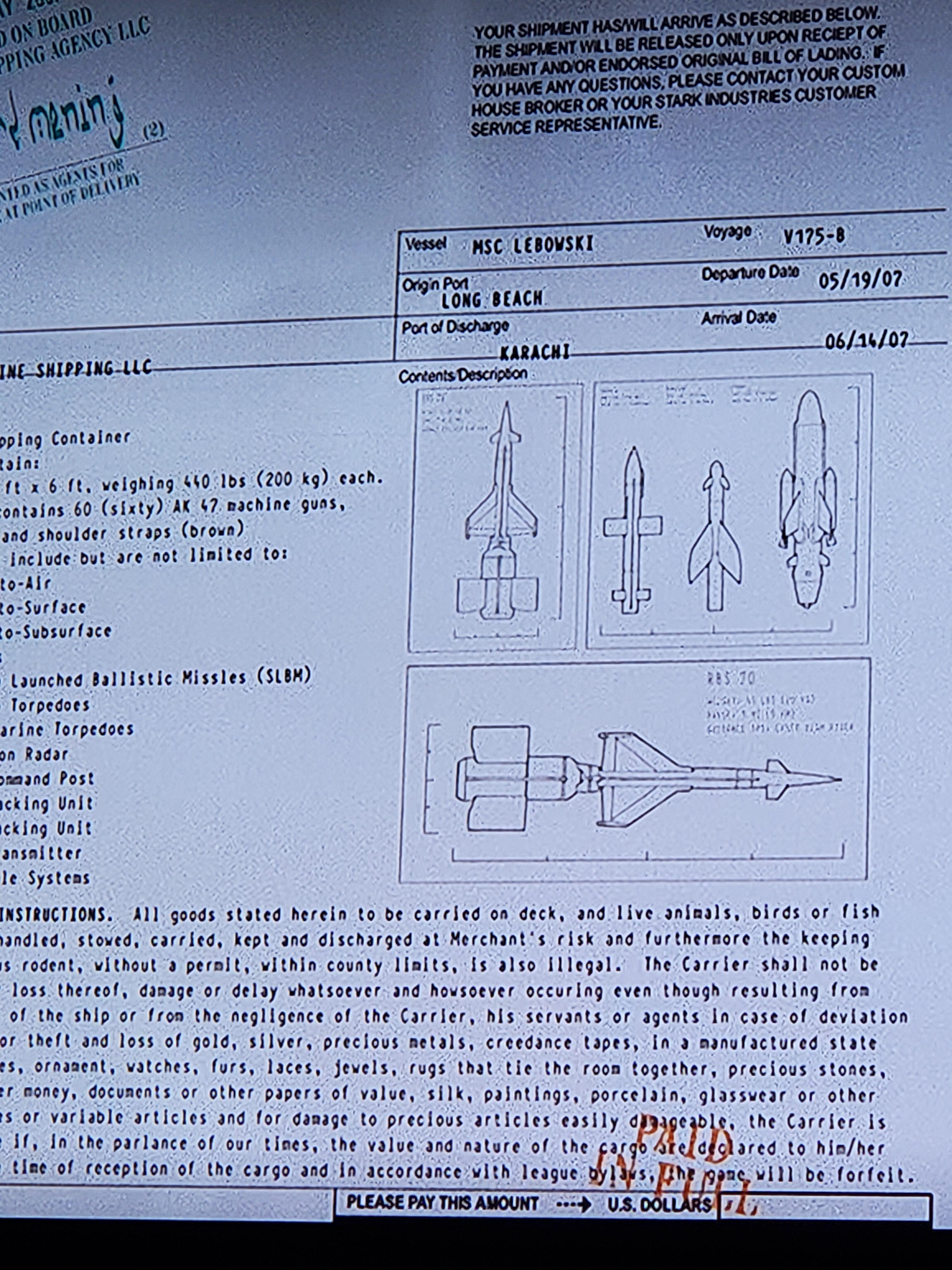 در جریان بررسی قراردادها، پپر پاتز به لیست تجهیزات ارسالی به یکی از کشتیهای باری نیروی دریایی برخورد میکند. ماجرا زمانی جالبتر میشود که بدانید این کشتی MSC Lebowski نام دارد. استفاده از چنین نامی برای یک کشتی باری بدون شک اشارهای به شخصیت جف لبوفسکی در فیلم کالت The Big Lebowski، ساختهی برادران کوئن است. اگر این فیلم را تماشای نکردهاید، باید بگوییم که نقش لبوفسکی را در این فیلم کمدی جف بریجز بر عهده داشته است.