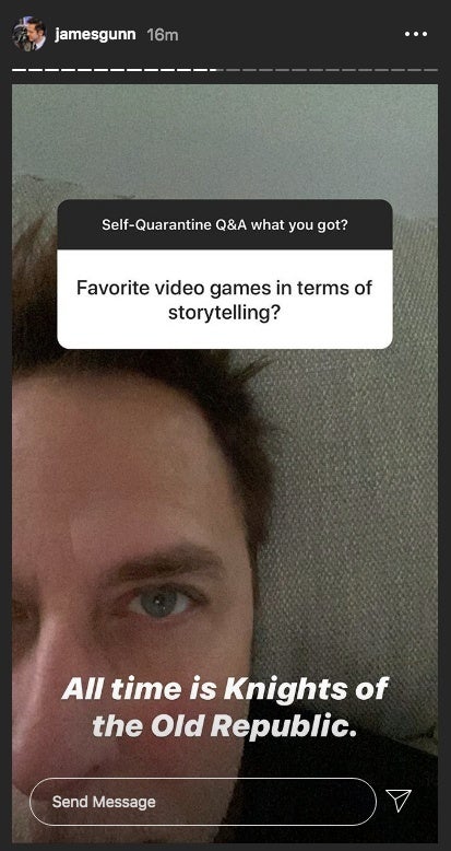 جیمز گان چندی پیش در اینستاگرام خود پستی گذاشت و از طرفدارانش خواست که سوالاتی از او بپرسند. معمولا بیشتر این پرسشها ممکن است در خصوص زندگی شخصی، روند کاری و علایق او باشد. فردی از او پرسید که بازی ویدیویی مورد علاقهاش در بخش روایت داستان چه چیزی است و جیمز گان هم در جواب به بازی Star Wars: Knights of the Old Republic اشاره کرد.