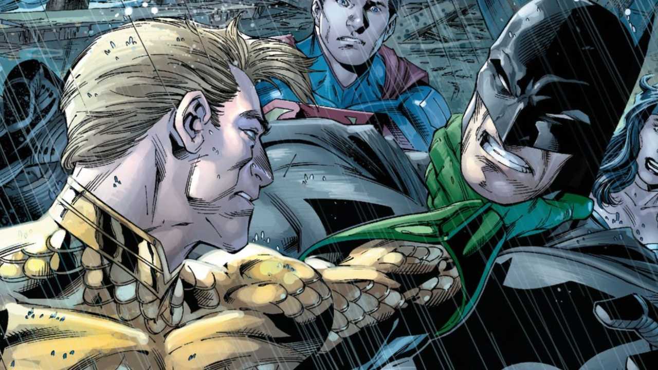 آرتور کوری (Arthur Curry) همیشه مرد دو دنیا بوده است، اما باید در خط داستانی «تخت آتلانتیس» یکی را انتخاب میکرد. وقتی Ocean Master برای حمله به سطح زمین آمد، آرتور میدانست تنها راهی که میتواند برادرش وادار کند تا به او گوش کند نمایش تواناییها و قدرت خودش بود. آکوامن مبارزه با همگروههای خود را آغاز میکند و تقریبا همه آنها را شکست میدهد. این یک مورد از خیانتهای اعضای لیگ عدالت جدی نبود، اما هم تیمیهای آکوامن به شدت با آن مخالف بودند.