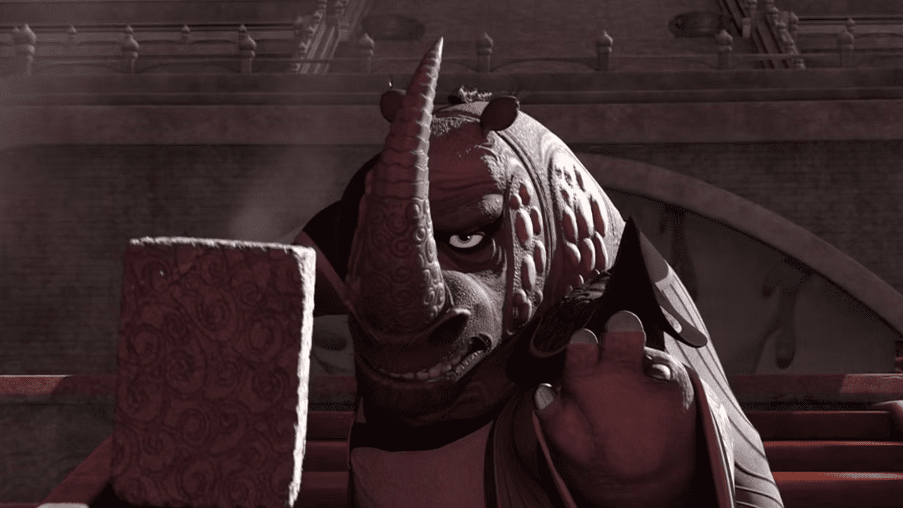 یکی از دیگر از اعضای شورای کونگ فو که در لیست قدرتمندترین شخصیتهای فرنچایز پاندای کونگ فوکار قرار دارد، مستر راینو است. او تا قبل از اینکه کشته شود، رهبر شورا بود. راینو همچنین وظیفه محافظت از شهر گوگمن را به دوش میکشید تا اینکه در انیمیشن Kung Fu Panda 2 جانش را از دست داد. با وجود مهارتش در کونگ فو، مستر راینو بخاطر دانایی و شوخ طبعیاش شناخته میشد و محبوبیت زیادی داشت.
