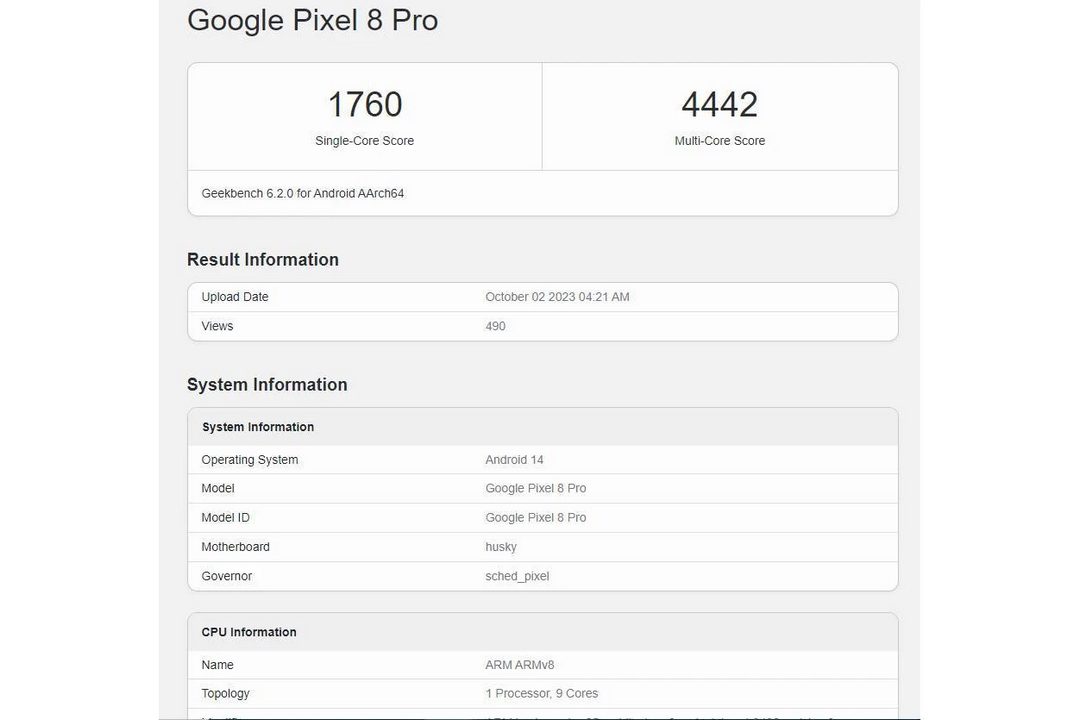 طبق بنچمارک، پیکسل ۸ پرو قرار است پردازندهی تنسور G3 را به عنوان قلب تپنده در خود داشته باشد. پردازندهای که در بخش تک هستهای موفق به کسب امتیاز ۱۷۶۰ و در بخش چند هستهای، امتیاز ۴۴۴۲ را کسب کند. این امتیاز پیشرفت قابل توجهی را در مقایسه با پیکسل ۷ پرو نشان میدهد که با تنسور G2 در بنچمارک مشابه توانست امتیاز ۱۴۴۴ و ۳۷۹۳ را در بخش تک و چند هستهای کسب کند.