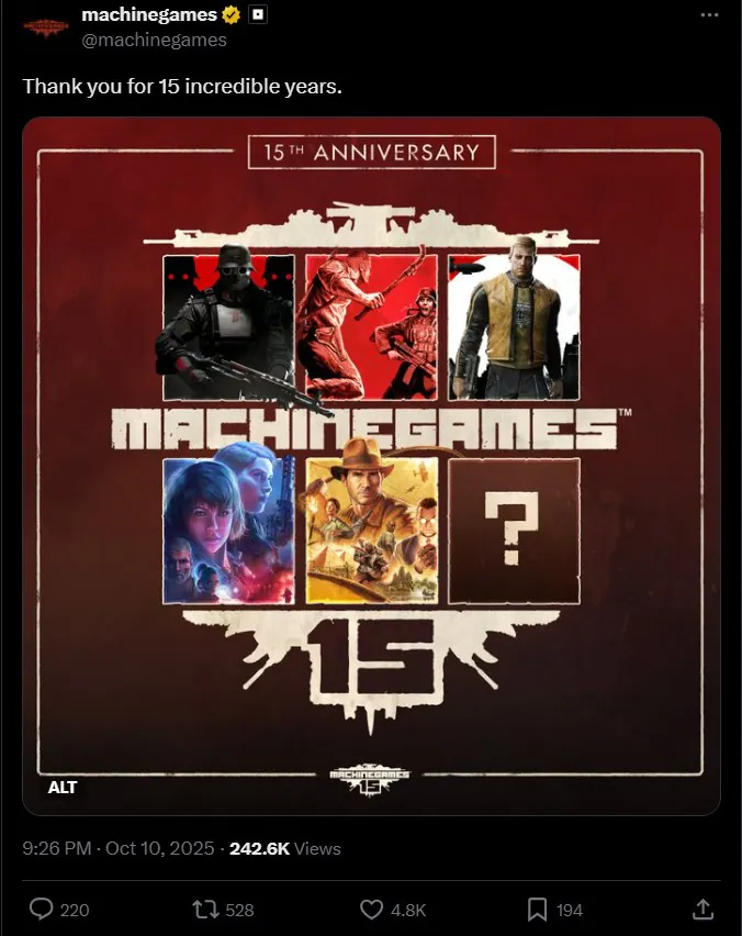 استودیو ماشین گیمز که پیشتر با توسعه بازی ایندیانا جونز توجه بسیاری را به خود جلب کرده بود، این بار در پوستری ویژه، تصویری با علامت سوال به نمایش گذاشته که نشان میدهد پروژه جدیدی در حال حاضر در سکوت خبری و به دور از رسانهها در حال توسعه است.