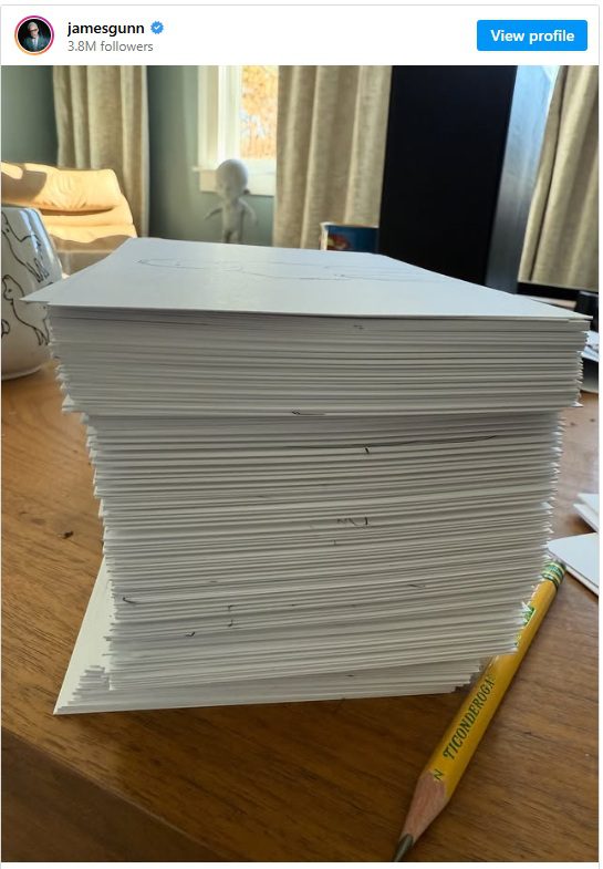 گان در حساب کاربری خود در شبکه اجتماعی اینستاگرام تصویری از تعداد قابل توجهی استوریبرد را به اشتراک گذاشت که قرار است برای فیلم بعدی ایشان مورد استفاده قرار بگیرد. اگر بخواهید به دقت نگاه کنید طرحی از کاراکتری را در بالای بقیه مشاهده میکنید که شاید به نوعی اول تصویر از شخصیت برینیاک در این فیلم را به نمایش میگذارد. جیمز گان با انتشار این توضیح در پست خود نوشت: “استوریبردهای جدید برای عوامل در روز دوشنبه صبح آماده هستند.”