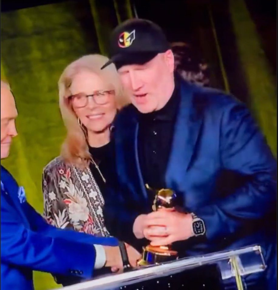 کوین فایگی، مدیر استودیو مارول بوده و شب گذشته در مراسم Saturn Awards حضور یافت. نکته جالب و غیرمنتظره ماجرا اینجاست که او با کلاهی روی استیج آمد که ظاهراً لوگو جدید فیلم Deadpool 3 باشد. لوگو قدیمی بصورت کامل به ددپول اختصاص داشت اما نیمی از لوگو جدید به این ضدقهرمان پرحرف و نیمی دیگر به ولورین اختصاص داده شده است. در ادامه میتوانید آن را مشاهده کنید:
