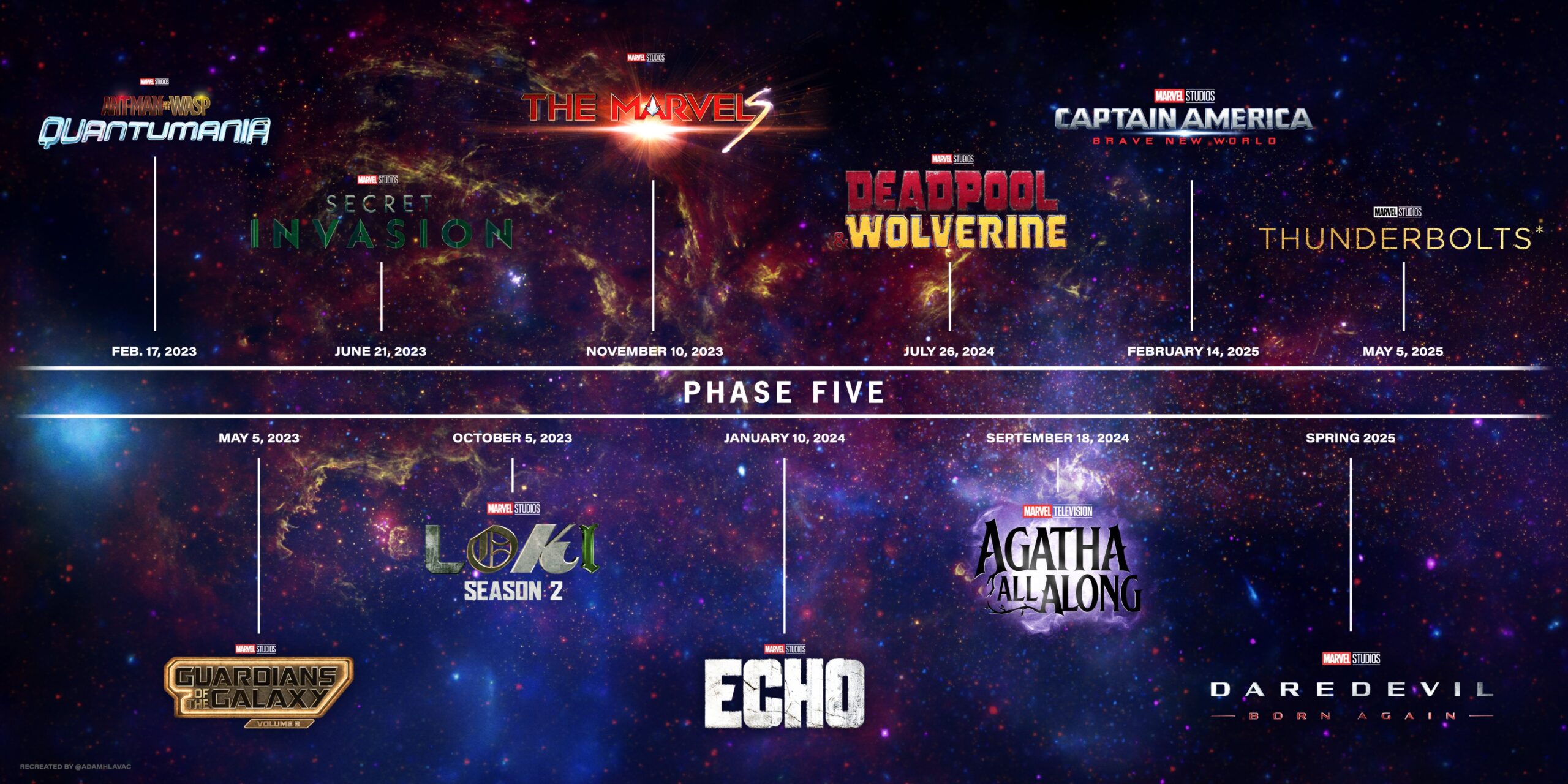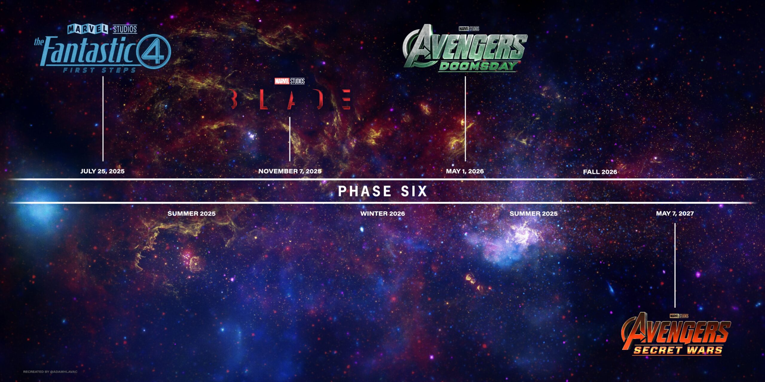 بهلطف یوتیوبری معروف، بالاخره میتوانیم نگاهی به جدول بهروز شده فیلم های دنیای سینمایی مارول در فاز پنجم و ششم داشته باشیم.