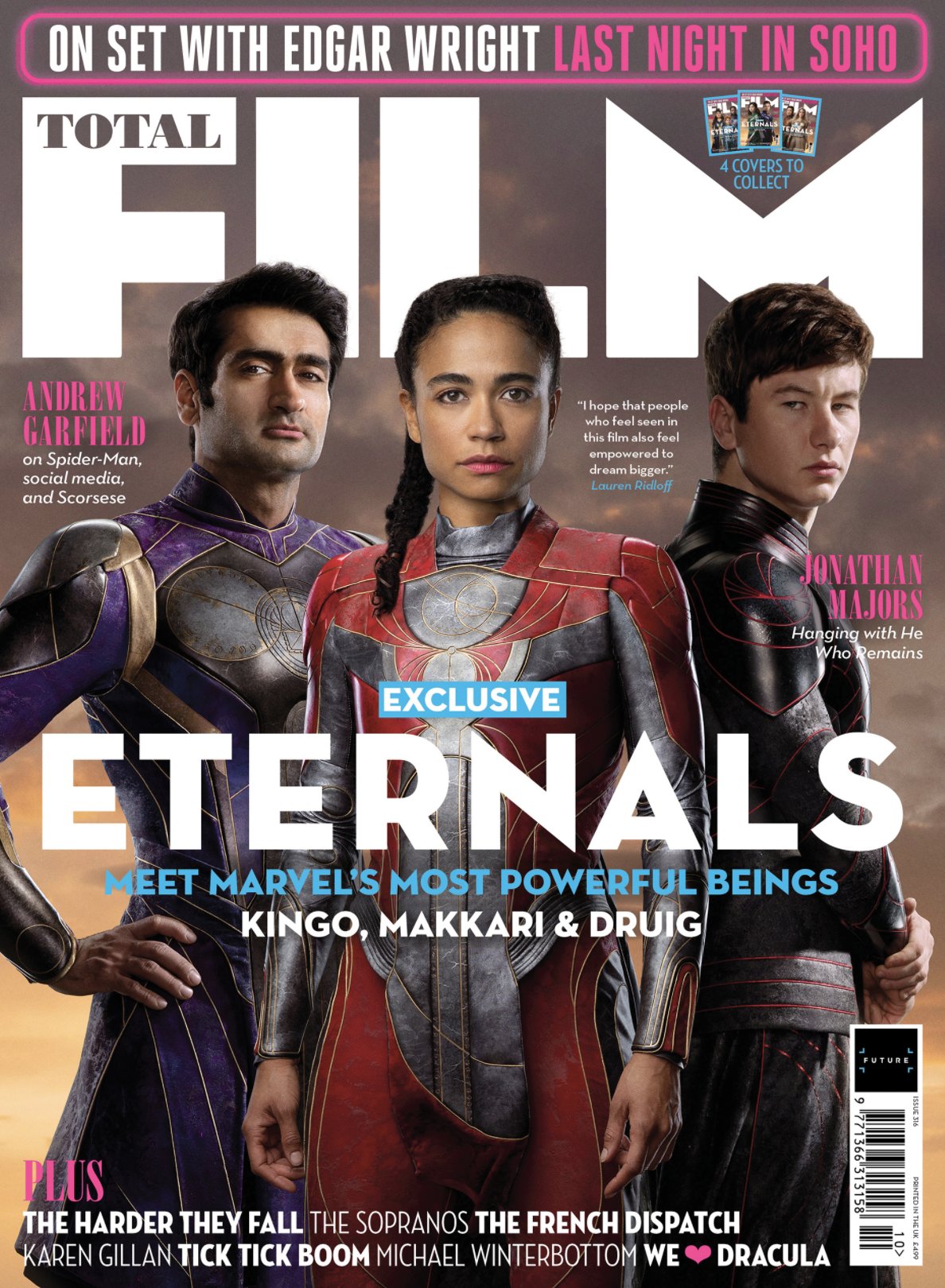 حال جدای از داستان شگفتانگیزی که اگر به درستی روایت شود، میتواند توجه کاربران بسیاری را هم به خود جلب کند، بازیگران مهم و سرشناسی در این فیلم حضور دارند که جمع ابرقهرمانان تازه معرفی شده MCU را تشکیل میدهند. کمیل ناجیانی، آنجلینا جولی، لارن ریدلف و گما چان از بازیگران محبوبی هستند که در فیلم Eternals ایفای نقش خواهند کرد. در گذشته نیز همه این شخصیتها را در تریلرهای مختلف این فیلم دیده بودیم، اما حال میتوانید لباس جدید و مدرن آنها را در کاورهای منتشر شده زیر در مجله Total Film تماشا کنید!