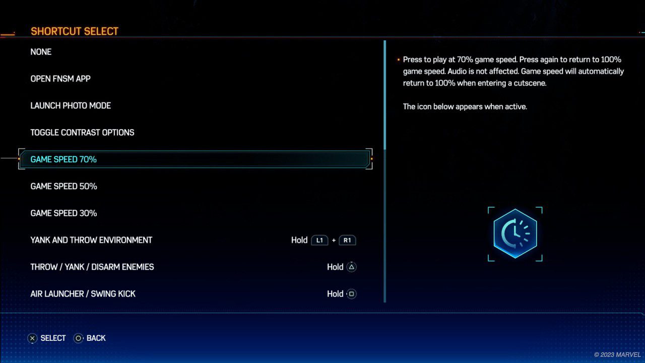 Quick Time Event (QTE) Autocomplete: رویدادهای فوری که بخش جدایی ناپذیری از بازیهای اسپایدرمن هستند خیلی طرفدارا ندارند، بههمین خاطر گزینه تکمیل بهصورت خودکار به بازی اضافه شده است. اینگونه بهجای فشار دادن مکرر چندین دکمه، میتوانید به تماشای رویدادهای فوری بنشینید، درست مثل کاتسینها.