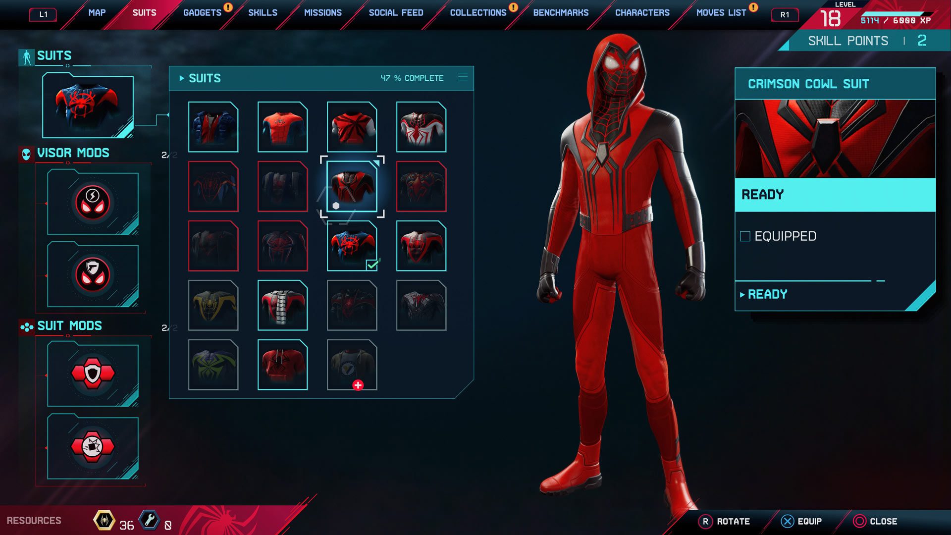 سیستمهای ارتقای کاراکتر نسبت به قبل تغییرات اندکی داشتهاند. درخت مهارتها تاثیر تدریجی مثبتی در تقویت تواناییهای مایلز دارد و آپگرید کردن لباس و گجتها گزینههای بیشتری در مبارزه در اختیارتان میگذارند و علی الخصوص مخفیکاری را راحتتر میکنند. قابلیتهای ویژهی لباس و آیتمها اگرچه تنوع خوبی دارند، اما اگر بازی را روی درجهی سختی بالا تجربه نمیکنید، کمتر پیش میآید که برای پیشروی در مراحل به امتحان کردن همهی آنها احتیاج پیدا کنید. خود لباسها اما حسابشان کاملا جداست. با آن که تعدادشان نسبت به بازی Spider-Man کمتر است، اما طراحی بسیاری چشمنوازی دارند و هیچگاه نمیتوانستم یکی را برای طولانیمدت بپوشم. جذابترین آنها قطعا اسکین مرد عنکبوتی نسخهی Spider-Verse است که یک حالت سینماتیک باحال هم دارد که کاملا حس و حال این انیمیشن دوستداشتنی را منتقل میکند.