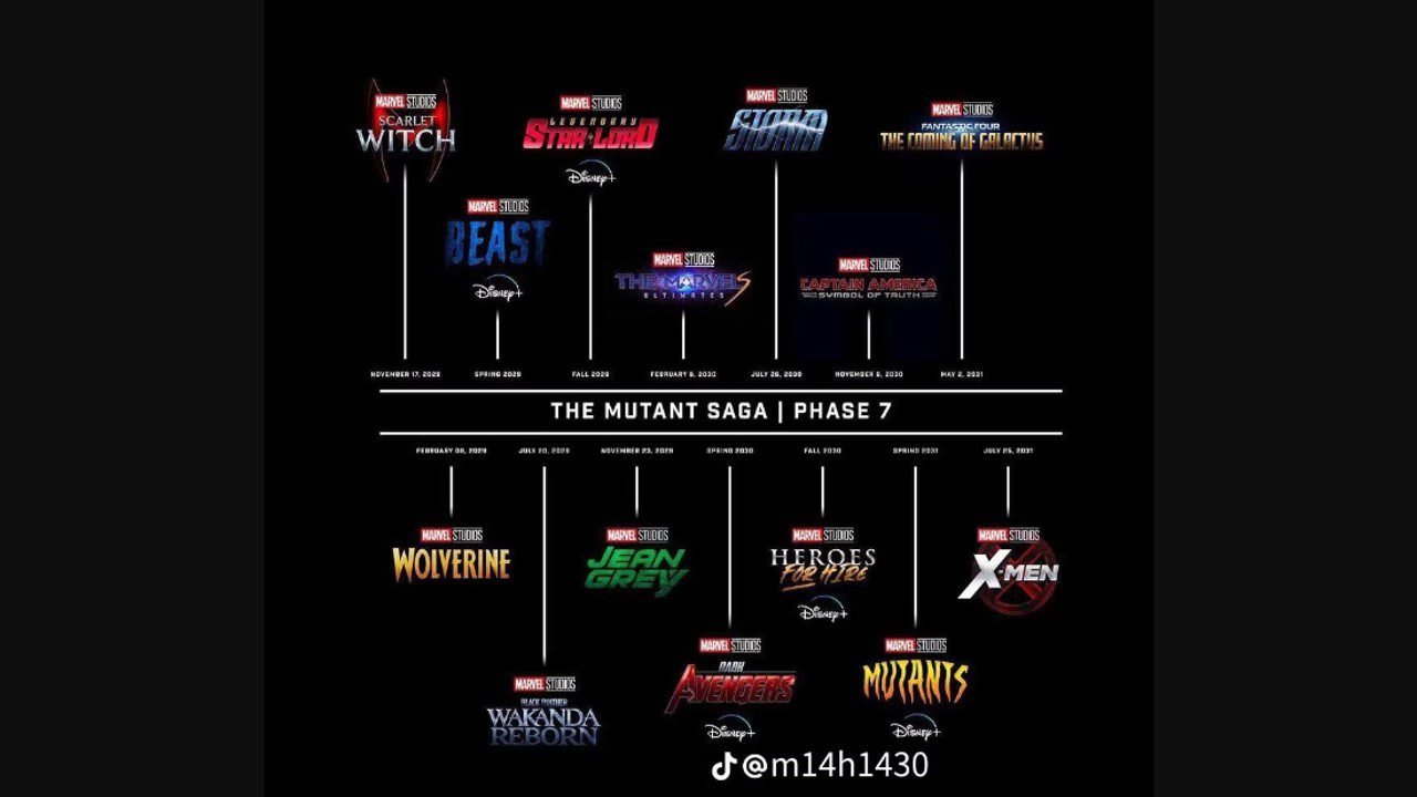 جالب اینجاست که علیرغم ضعف و مشکلات اخیر، طرفداران همچنان نسبت به موفقیت دنیای سینمایی مارول امیدوارند، چراکه کابری بهنام M14H با انتشار تصویری ساختگی در صفحات اجتماعی خود، فاز هفتم دنیای سینمایی مارول را به حماسه جهشیافته تبدیل کرده که عناوین آن در تصویر زیر قابل مشاهده است.