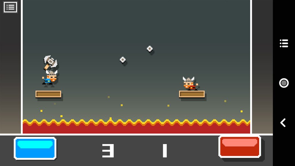 اولین مینیگیم در Micro Battles، پرتاب تبر توسط دو وایکینگ کوچک و بامزه است؛ وایکینگها روی دو سکوی متحرک به چپ و راست میروند و شما باید در زمان متناسب تبر وایکینگتان را پرتاب کنید تا به حریف بخورد و یک امتیاز بگیرید. نحوهی استفاده از هر دکمه به نوع بازیای که در آن هستید باز میگردد؛ در برخی بازیها لازم است با یک تکضربه کار حریف را بسازید و در بازی دیگری باید دکمه را ممتد بزنید یا پس از مکثی کوتاه رها کنید. این دقت و ظرافتها باعث میشود تا زدن این یک دکمه از کاری حوصلهسربر به ماجرایی هیجانانگیز تبدیل شود. در واقع برنده اصلی کسی است که بتواند با استفاده درست و بهموقع از دکمه، ۵ بار حریف را از دور خارج کند. غیر از نحوه بازی با دکمهها، موانع میان دو حریف هم گهگاهی میتواند کار را کمی سخت کند.
