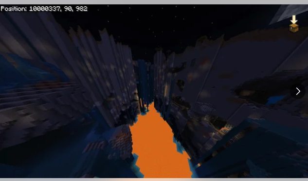 کاربر Both-Challenge-3204 در وبسایت ردیت ده میلیون بلاک در Minecraft حرکت کرده و در نتیجه آن زمینی به شکل باگ شده در برابر او قرار گرفته است. دو تصویر اول به اشتراک گذاشته، درهای را به نمایش میگذارد که در آن پلیر میتواند لایههای زیرین زمین از جمله مذاب به همراه گذرگاهها و آبشارهایی را مشاهده کند. تصویر دیگری، روستایی را نشان میدهد با این حال زمین باگ شده سبب شده تا برخی از اجزای محیط از صحنه حذف شود. در نتیجه ساختار روستا از هم منفصل بوده و تنها زمین کوچکی در آن دیده میشود.
