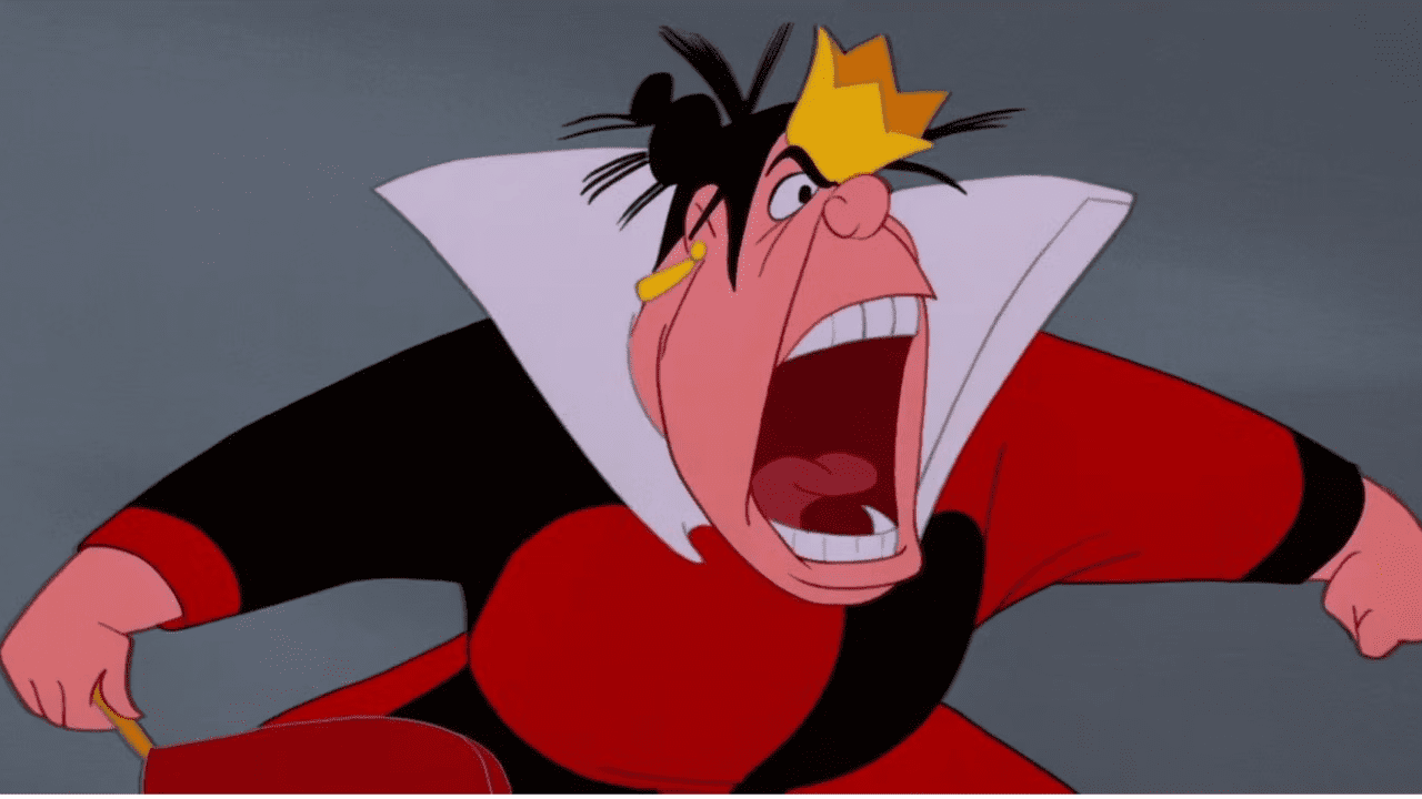 با توجه به دوره زمانی خود، انیمیشن آلیس در سرزمین عجایب یک قدم بلند پروازانه برای کمپانی دیزنی محسوب میشد، که به دلیل صحنههای دلخراش موجود، کودکان بسیاری را آسیب دیده کرد است. این اتفاق زمانی شدت یافت که ملکه قلبها (Queen Of Hearts) با دیالوگ “سرهای آنها را ببرید!” ظاهر میشود.ملکه قلبها در این انیمیشن به بدترین شکل ممکن با رعیتهای سرزمین خود رفتار میکند، در حالی که این رفتار شایسته ملکه یک سرزمین نمیباشد. به همین ترتیب، از ملکه قلبها میتوان به عنوان یکی از بیرحمترین ابرشرور های دیزنی یاد کرد.