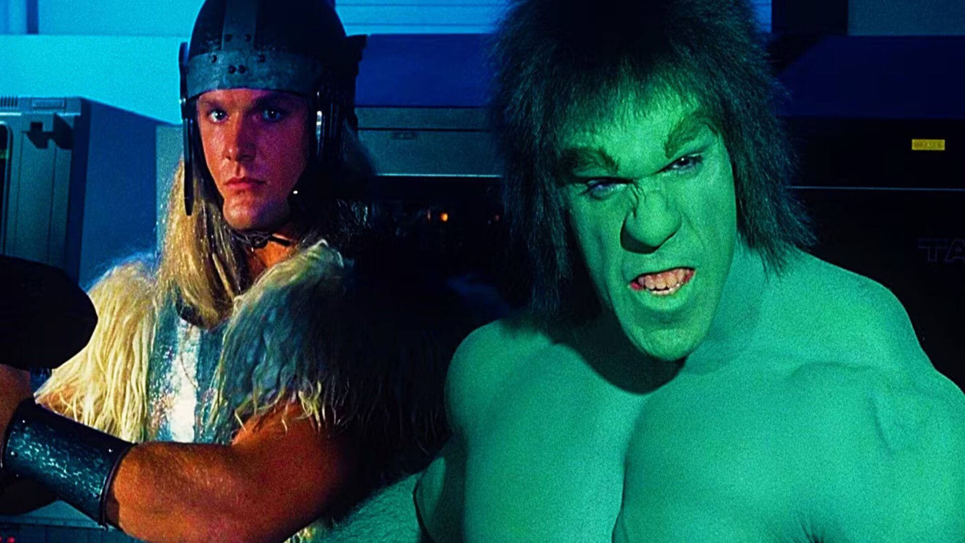 در این فیلم، دیوید بنر با هنرنمایی بیل بیکسبی (Bill Bixby)، همچنان هیچ کنترلی بر تغییرات و دگرگونیهایش ندارد، با ثور که اریک آلن کریمر (Eric Allan Kramer) نقشش را بازی کرده بود، روبرو میشود؛ جنگجویی پر سر و صدا و بیپروا که از والهالا (Valhalla) تبعید شده است. اولین دیدار این دو با تنش و درگیری همراه است، اما دیری نمیگذرد که این دو علیه دشمنی مشترک، متحد میشوند. با وجود محدودیتهای فنی آن زمان و بودجهای نه چندان بالا، تماشا کردن دو ابرقهرمان قدرتمند در کنار هم، در آن زمان به خودی خود اتفاقی بزرگ و پیشگامانه برای ژانر ابرقهرمانی به شمار میرفت. تلفیق نیروی خام هالک با شکوه اسطورهای ثور، الگوی جذابی را خلق کرد که بعدها در MCU نیز بارها تکرارشد.