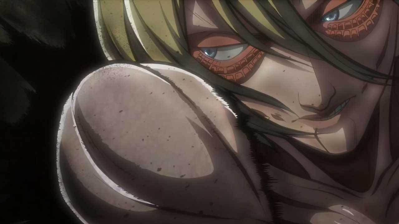در طول مبارزه آنی و ارن در شکل تایتانیشان، زمانی که آنی در نهایت میخواهد از دیوارها بالا برود تا از آن موقعیت فرار کند، قسمتی از دیوار به خاطر دستان سختش که به حالت الماس درآمده است فرو میریزد. پس از اینکه نبرد به پایان میرسد، افرادی که در آن مکان حضور داشتند متوجه شکسته شدن دیوار میشوند. اما جالب اینجاست که در همان قسمت از دیوار که فرو ریخته است، چهره یک تایتان که تا حدودی شبیه به تایتان عظیم الجثه است، آشکار شده است. در این سکانس، بینندگان به طرز غیر منتظرهای پی میبرند که همه دیوارهایی که سالها برای محافظت از انسانها در برابر تایتانها ایجاد شده بود، از تایتان ساخته شدهاند.