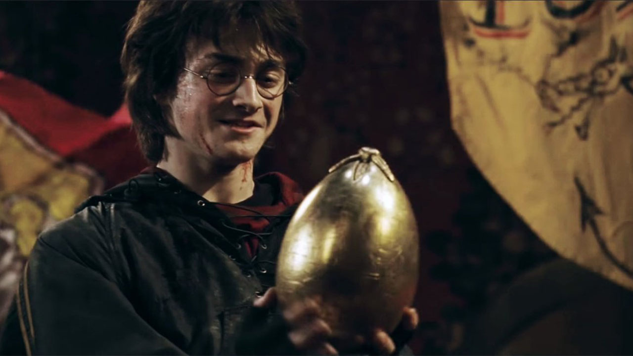 پس از اینکه هری در چالش نبرد با اژدها موفق میشود و تخممرغ طلایی را بدست میآورد، آن را به سالن عمومی گریفیندور، جایی که همه منتظر او هستند میبرد. دوقلوهای ویزلی یعنی جرج و فرد او را از روی زمین بلند میکنند و همگی هیجانزدهاند. البته با باز کردن تخممرغ طلایی و شنیدن صدای گوش خراشی که از آن خارج میشود و ورود رون ویزلی به این صحنه، طولی نمیکشد که همگی از آنجا میروند.