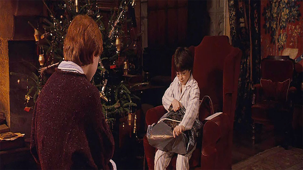 برای بار آخر باز هم در فیلم هری پاتر و سنگ جادو، وقتی کریسمس فرا میرسد هاگوارتز حال و هوای تازهای به خود میگیرد. البته باید اشاره کرد که قسمتهای مربوط به کریسمس در بیشتر فیلمهای هری پاتر، همیشه احساسات خوبی به مخاطب منتقل میکنند اما یکی از بهترین آنها در فیلم اول اتفاق میافتد. درحالی که هاگوارتز حالا بیشتر به مکانی برای تفریح تبدیل شده است و بیشتر دانشآموزان از جمله هرماینی گرنجر برای تعطیلات به خانههای خودشان رفتهاند، هری و رون وبزلی اوقات خوبی را در سالن عمومی گریفیندور میگذرانند. در صبح کریسمس، وقتی هری با صدای رون بیدار میشود، احتمالا براساس تجربیات گذشتهاش در روزهای کریسمس، توقع ندارد هدیهای دریافت کند. اما وقتی متوجه میشود که برای او نیز هدیههایی فرستاده شده بسیار هیجانزده میشود. شنل نامرئی که به طور مرتب در ادامه داستان توسط هری و دوستانش مورد استفاده قرار میگیرد، در همین صحنه به مخاطب نشان داده میشود.