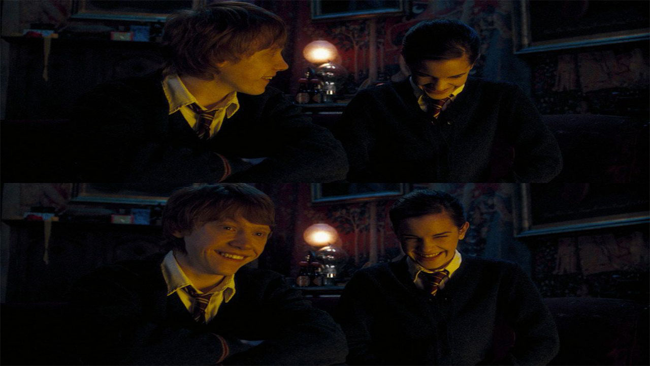 درست در ادامه مورد قبلی پس از جشن کوتاهی که برای هری در سالن عمومی گریفیندور برپا میشود، هری لحظات مهمی را با رون میگذراند. همانطور که در مورد قبلی اشاره شد در دوستی این دو تا به این لحظه مشکلاتی بوجود آمده است. رون اعتراف میکند که میداند هری نامش را درون جام ننداخته است. هری نیز متوجه میشود که این رون بوده است که در فهمیدن چالش اول به او کمک کرده است. این مکالمه کوتاه لحظهای فوقالعاده را رقم میزند چرا که هیچکس دوست ندارد هری پاتر و رون ویزلی دوست یکدیگر نباشند.