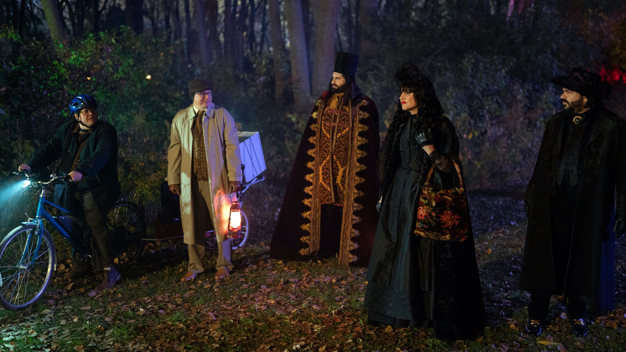What We Do in the Shadows یک سریال مستندنما بوده و المانهای دو ژانر کمدی و ترسناک را در خود جای داده است. داستان در جزیره استتن آیلند واقع در نیویورک روایت شده و درباره سه خونآشام به نامهای ناندور، لازلو و نادیا است که به همراه خانوادهشان در یک عمارت زندگی کرده و هنوز نتوانستهاند با دنیای مدرن کنار بیایند.