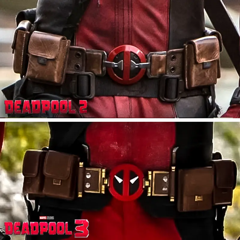 تغییر دیگری که طرفداران از دیدن آن خوشحال خواهند شد، سگک کمربند وید ویلسون است که با لوگوی نمادین ددپول جایگزین شده است. دو فیلم اول بهطرز هوشمندانهای لوگوی کلاسیک را در طراحی مدرن لباس منعکس کردند، اما طراحی جدید استودیو مارول توانسته درست مثل کمیکها لوگوی کلاسیک ددپول را بهنمایش بگذارد.