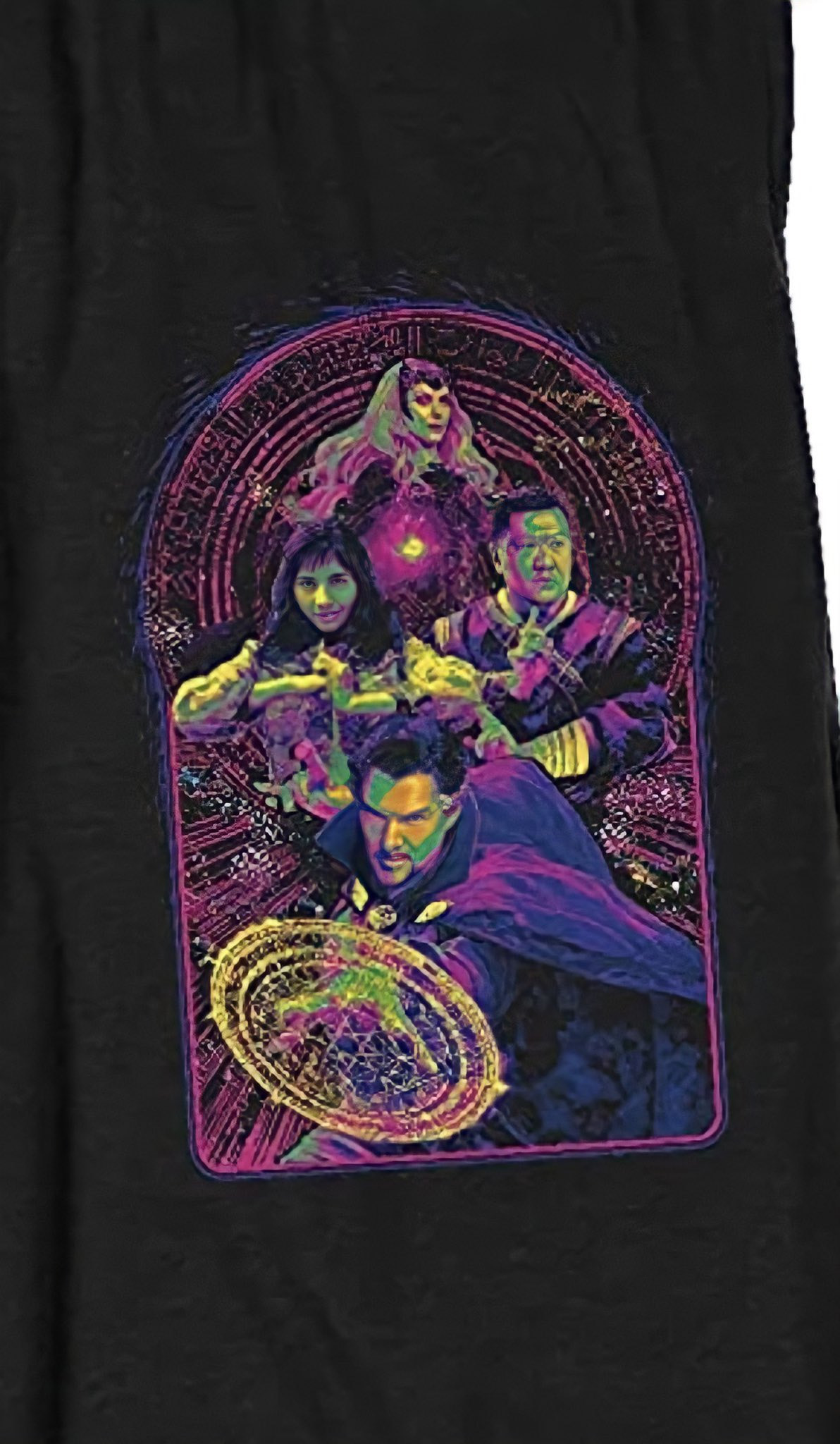اکانت توییتری Doctor Strange 2 Updates اخیرا تصویری از تیشرت تبلیغاتی Doctor Strange 2 را به اشتراک گذاشته که شخصیتهای دکتر استرنج، اسکارلت ویچ، وانگ و آمریکا چاوز را کنار هم نشان میدهد. این تصویر را میتوان اولین نگاه به ابرقهرمان جدید فرنچایز Marvel Cinematic Universe دانست. در ادامه میتوانید آن را مشاهده کنید: