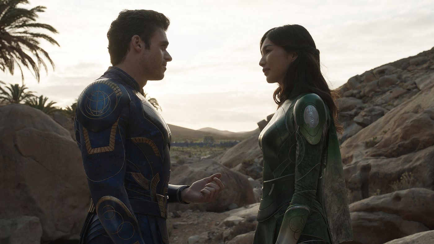 وب سایت Empire ساعاتی قبل تصاویر تازه فیلم Eternals را منتشر کرد. عکس نخست با محوریت برایان تایری هنری (Brian Tyree Henry)، جما چان (Gemma Chan)، ریچارد مدن (Richard Madden)، کیل نانجیانی (Kumail Nanjiani)، لیا مک هیو (Lia McHugh) و بری کیوگن (Barry Keoghan) ثبت شده است. آنها به ترتیب نقشهای فاستوس، سرسی، ایکاریس، کینگو، اسپرایت و دروگ را ایفا میکنند. عکس دوم هم سرسی و ایکاریس را نشان میدهد. در ادامه میتوانید آنها را مشاهده کنید: