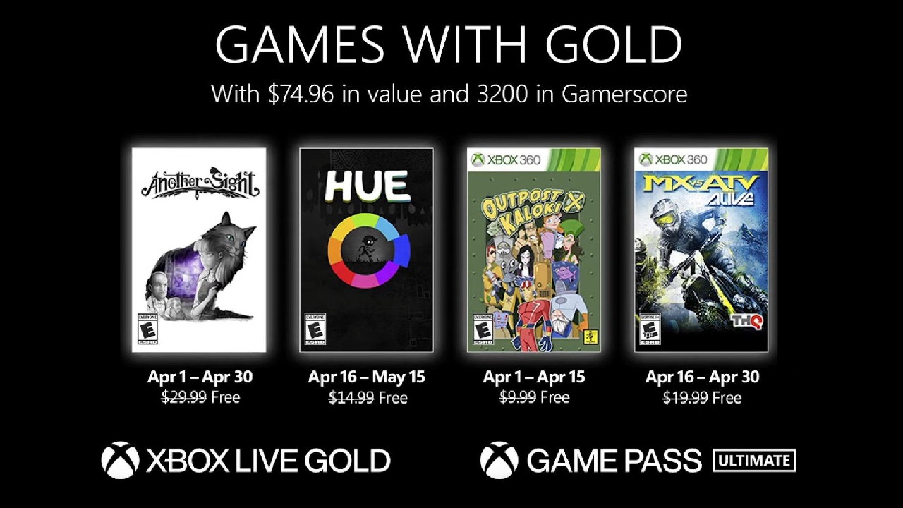 شرکت مایکروسافت ساعاتی پیش از فهرست اسامی بازیهای رایگان ماه آوریل ایکس باکس لایو گلد پرده برداشت که شامل عناوین گوناگونی از جمله Another Sight و MX vs ATV Alive برای کنسولهای قدیم و جدید ایکس باکس میشود.