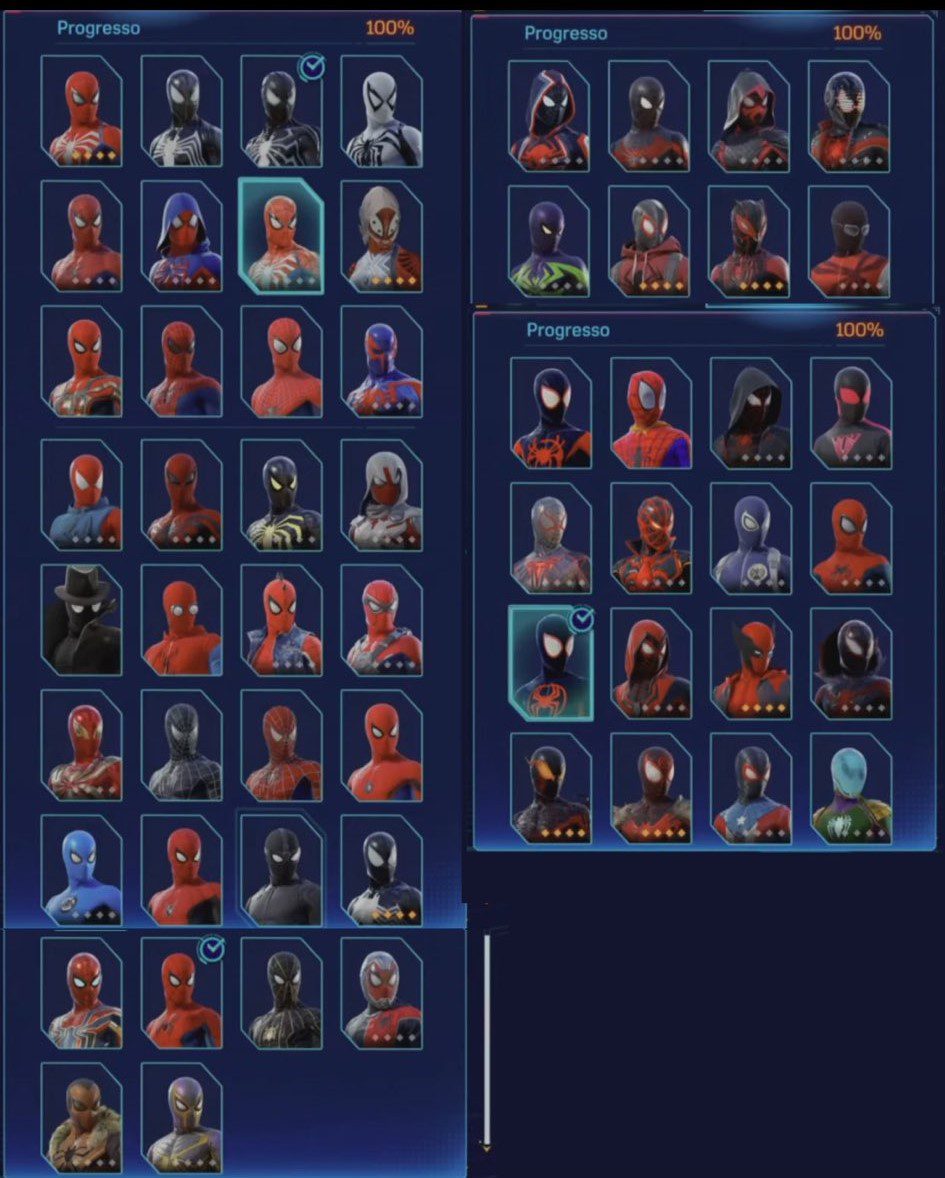 طبق این تصویر، در کل ۵۸ لباس برای باز کردن موجود است که با وعده “بیش از ۶۵ لباس” استودیو اینسامنیاک گیمز تطابق ندارد، اما باید توجه داشته باشید که این تصویر شامل ۱۰ طراحی انحصاری نسخه دیجیتال لوکس نیست. از طرفی دیگر احتمال اینکه اینسامنیاک گیمز درست مثل عناوین پیشین Marvel’s Spider-Man و Marvel’s Spider-Man: Miles Morales لباسهای بیشتری را از طریق بهروزرسانیهای مختلف به بازی اضافه کند بالاست.