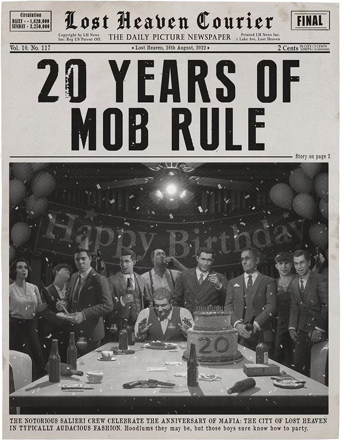 هنگر 13 به مناسبت بیست سالگی سری بازیهای مافیا، یک پست در وب سایت رسمی آن منتشر کرده است. این پست شامل مصاحبه با تعدادی از توسعهدهندگان شده که درباره موضوعات متفاوت از جمله مرحله مورد علاقهشان گفتگو میکنند. مهمترین بخش پست را میتوان انتهای آن دانست؛ جایی که رومن لادیک (Roman Hladík) مدیر کل استودیو ساخت Mafia 4 را تایید میکند. او در ادامه تاکید دارد عنوان مورد نظر چند سالی با عرضه جهانی فاصله داشته و در حال حاضر نمیتوانند اطلاعات بیشتری پیرامون آن به اشتراک بگذارند. لادیک همچنین میگوید تمامی اعضای تیم از کار روی این فرنچایز دوست داشتنی هیجان زده بوده و میخواهند کاربران را به واسطه داستانهای جدید سرگرم کنند.