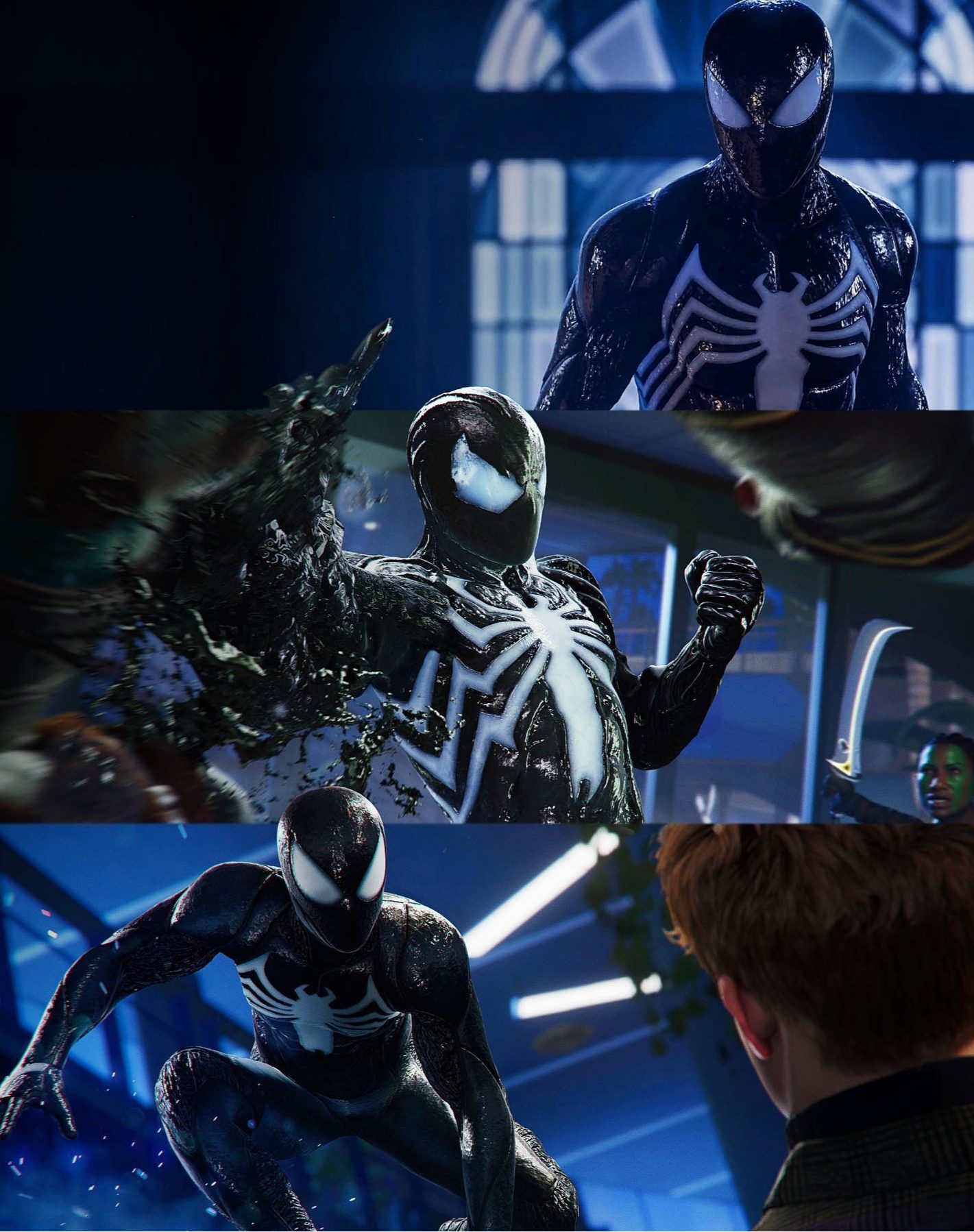 با این حال از آنجایی که استودیو اینسامنیاک گیمز همواره دوست دارد با وفادار بودن به کمیکها، داستانی جدید و منحصر بهفرد روایت کند، احتمال دارد با جان بخشیدن به یکی از معروفترین خطوط داستانی کمیکی، یعنی Ultimate Spider-Man، پیتر پارکر را به ونوم تبدیل کنند. اگر به یاد داشته باشید در گیمپلی دوازده دقیقهای پلی استیشن شوکیس چند ماه پیش دیدیم که وقتی پیتر عصبانی میشود، چشمانش کمی تغییر میکند و شبیه ونوم میشود. حالا بهتازگی چندین اسکرین شات جدید بههمراه اولین پیش نمایشهای بازی در فضای مجازی منتشر شده که با نشان دادن ظاهری متفاوت از لباس سیمبیوتی پیتر بهنوعی این موضوع را تایید میکند.