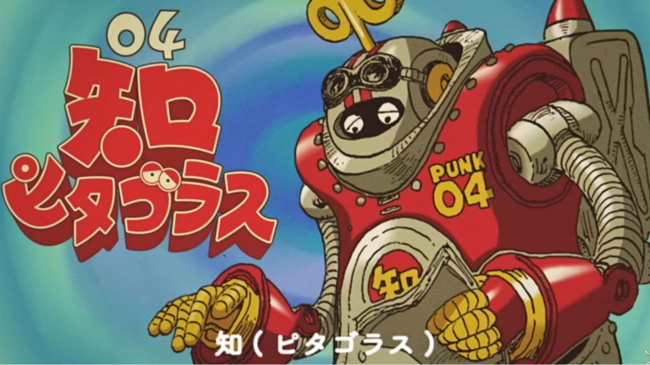 درست همانند ادیسون، فیثاغورس (Pythagoras) نیز یکی دیگر از بدنهای مکانیکی دکتر وگاپانک در انیمه وان پیس به شمار میآید. با این حال، این بدن، نسبت به ادیسون، از قد بلندتری برخوردار است. در واقع، فیثاغورس به عنوان بدن خرد در نظر گرفته میشود و به همین خاطر نیز، به طور معمول، بر روی ایدههایی کار میکند که ادیسون از قبل آنها را ارائه داده است. این موضوع زمانی برای اولین بار به تصویر کشیده شد که در حین مبارزه دزدان دریایی کلاه حصیری، ادیسون تعدادی از ایدهها را به او محول کرد تا او بتواند بر روی آنها، به صورت دقیقتری کار کند. اینگونه به نظر میرسد که وظیفه اصلی این موجود ثبت دادهها و کار بر روی آنها در طول فرایند تحقیق باشد.