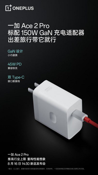 وانپلاس Ace 2 پرو قرار است با شارژر 150 واتی راهی بازار شود که میتواند باتری ۵۰۰۰ میلیآمپر ساعتی این گوشی را در مدت ۱۷ دقیقه شارژ کند.