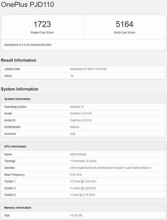 وانپلاس Ace 3 با اسنپدراگون ۸ نسل ۲ در گیکبنچ دیده شد