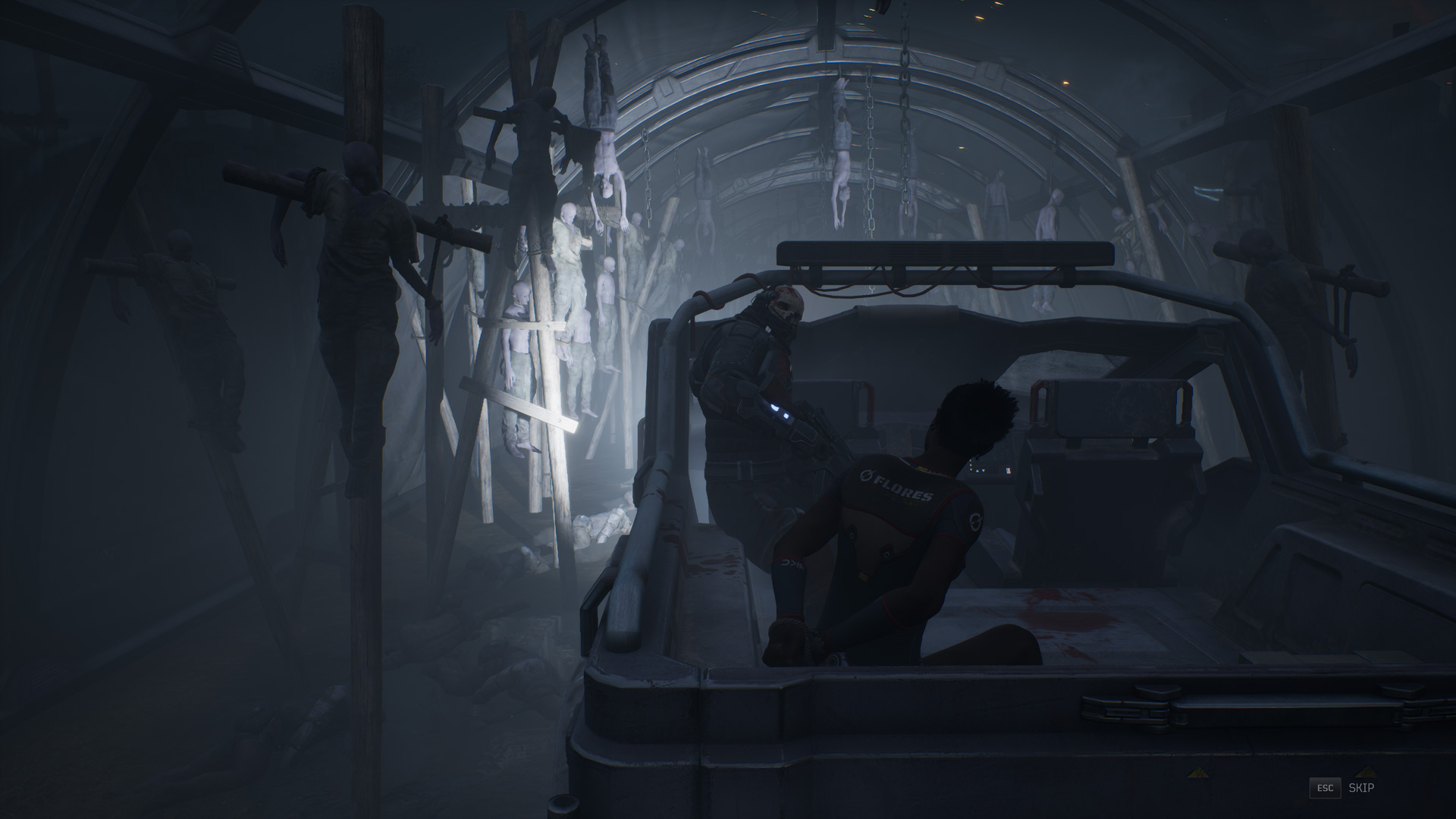 اتمسفر اوترایدرز تاریک و سنگین است و داستان بازی به ظاهر قصد دارد بسیار جدی و و روراست باشد، اما به غیر از چند پیچش داستانی جذاب، چیز زیادی برای ارائه ندارد. کاراکتر اصلی در همان Anomaly اول، قدرتهای فراطبیعی پیدا میکند و تبدیل به Altered میشود. با اینکه در خلال داستان و کاتسینها با او همچون یک خدای شکستناپذیر برخورد میشود، اما وقتی میبینید که در میدان نبرد، یک سرباز ساده از جبههی دشمن قادر است به آسانی شما را از پا درآورد، حس عجیبی پیدا خواهید کرد. شخصیتهای داستان بشدت تکبعدی و بیخاصیت هستند و بود و نبود آنها عملا فرقی در داستان ندارد. کارگردانی بسیار بد کاتسینها و اجرای صداپیشگان هم این مسئله را بدتر میکند. داستان تقریبا از اواسط نیمهی دوم شتاب زیادی پیدا کرده و دائما کاراکترها را به نقاط جدید میبرد، اما پیش از آنکه به اندازهی کافی به موقعیت فعلی ماجرا بپردازد، وارد فاز بعدی میشود. ضعف شدید روایت داستانی بازی Outriders مایهی تاسف است چرا که چنین بستری پتانسیلهای زیادی در خود داشت. پیشزمینههای داستانی که از طریق دستنوشتهها و نامهها مطرح میشوند، ظرافت و جزئیات جذابی دارند که شما را برای کند و کاو بیشتر داخل داستان و اتفاقاتی که در ۳۰ سال اخیر در Enoch افتاده کنجکاو میکنند، اما روایت بازی قادر به استفاده از این پتانسیل نیست. علاوه بر این، فضاسازی فوقالعادهای که PCF در اوترایدرز انجام داده، به شکل غمانگیزی هدر میرود.