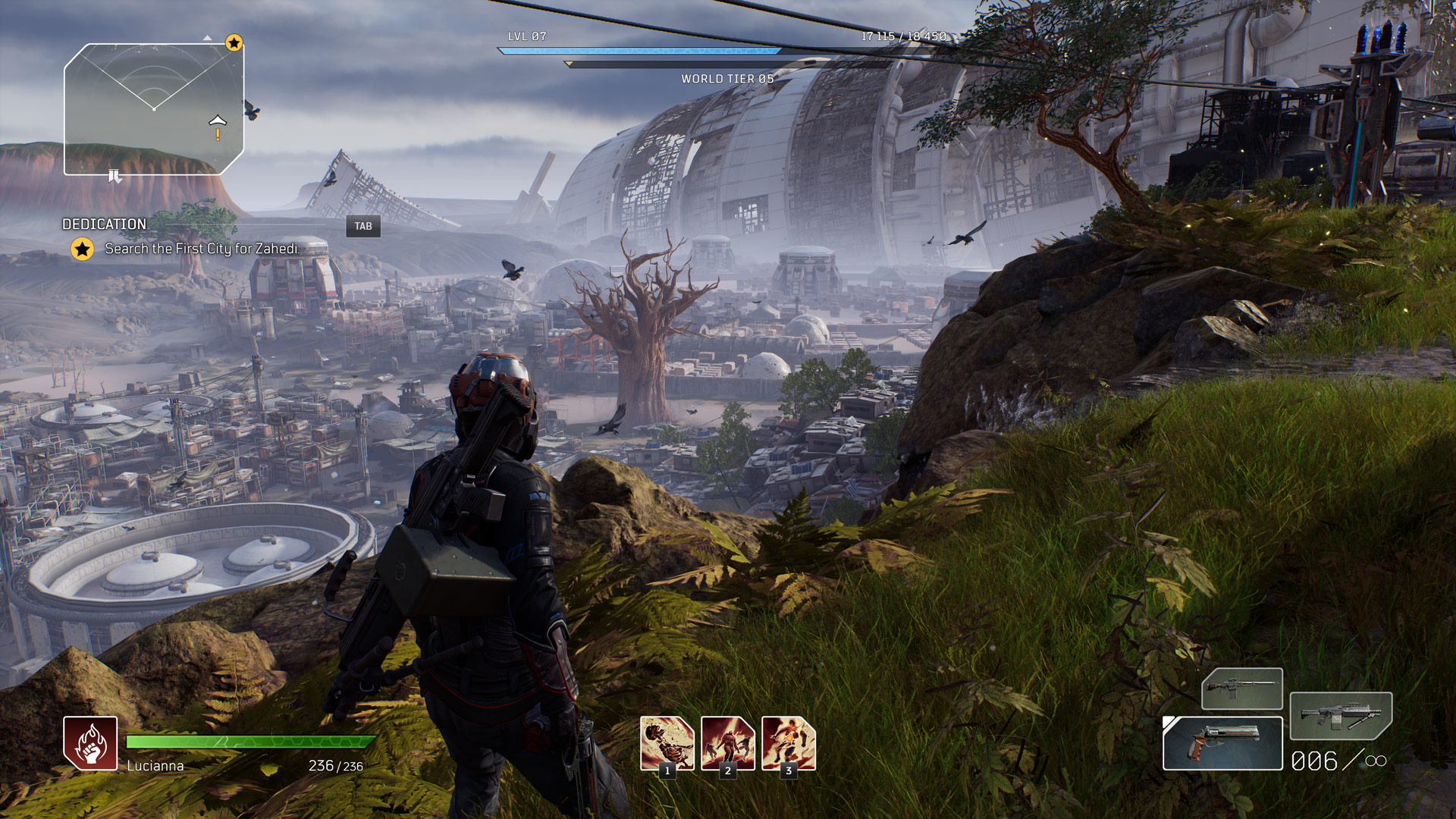 هدف اوترایدرز مشخصا آن است که بازیکن را دائما در جنبوجوش نگه دارد؛ کافی است چند ثانیه پشت کاورهای کمارتفاع محیط صبر کنید تا بارانی از نارنجکها و موجی از دشمنان خنجربهدست روی سرتان خراب شوند. در چنین شرایطی برقراری تعادل میان توانایی کاورگیری و تهاجم بازیکن در نبرد ضروری است؛ تعادلی که با ادامه یافتن بازی بیشتر و بیشتر به هم میخورد. هر چقدر که بیشتر در بازی جلو میروید، بهتر به این نکته پی میبرید که بازی Outriders بیشتر برای تجربهی کو-آپ ساخته شده تا تکنفره. با اینکه بازی با سیستمها و مکانیکهای مختلف دستتان را در شکل دادن کاراکتر ایدهآل باز میگذارد، اما هر استیج بهشکل آزاردهندهای مملو از دشمنان ریز و درشت است که از هر طرف بدون توقف به سمتتان حملهور میشوند و هر چه گلوله دارند رویتان خالی میکنند. بازی از شما میخواهد که برای زنده ماندن از پشت کاور خارج شوید، اما طراحی محیطهای مبارزه کمکی به تحرک آزادانهی شما نمیکند و چارهای جز این که بیشتر و بیشتر عقبنشینی کنید نخواهید داشت. خوشبختانه زمانی که کار برایتان گره بخورد، میتوانید درجهی سختی پویای بازی را پایین بیاورید. سختی اوترایدرز با سطوحی تحت عنوان World Tiers تعیین میشود. هر چقدر که بهتر بازی کنید، «سطح دنیا» بالاتر میرود که در نتیجهی آن، دشمنان سرسختتر اما لوت سخاوتمندانهتر خواهد شد.
