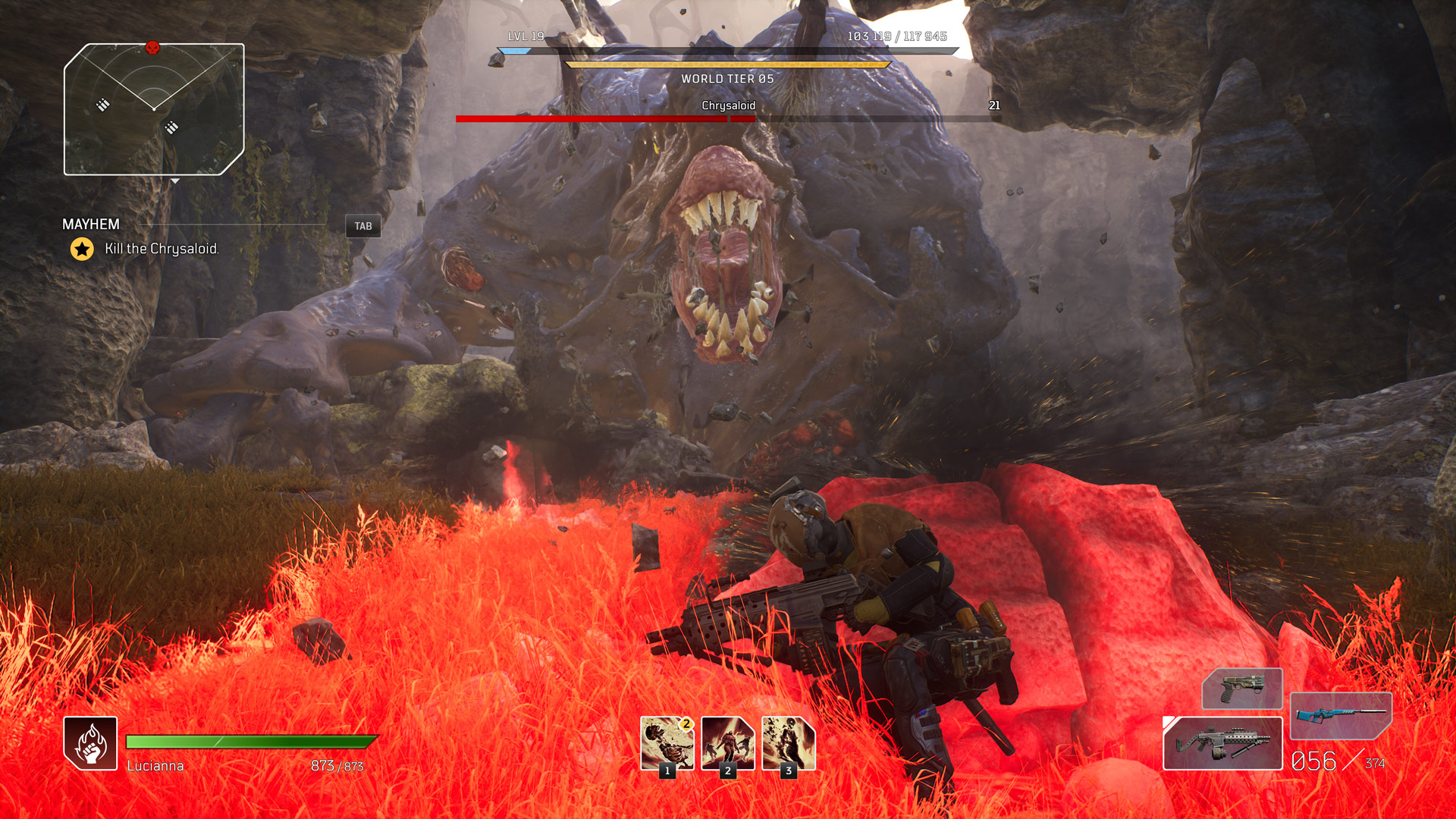 در زمینهی طراحی سیستمهای پرورش کاراکتر، بزرگترین ضعف بازی به سیستم لوتینگ برمیگردد. تنوع سلاحهای بازی، که تمام آنها بدون استثنا فشنگخور هستند، اصلا چنگی به دل نمیزند. زمانی که تازه به اندک سلاحهای کلاس لجندریِ متمایز و چشمنواز بازی دست پیدا میکنید، به نظرتان میآید که دیگر ماشین کشتار محبوبتان را پیدا کردهاید. طولی نمیکشد که یک سلاح استاندارد خستهکنندهی دیگر لوت خواهید کرد که قدرت بسیار بیشتری از سلاح «لجندری» خفنتان دارد و چارهای برایتان نمیگذارد که سلاح محبوبتان را برای مادهای باارزشش نابود کنید. همین مسئله برای قسمتهای مختلف لباس کاراکتر هم صدق میکند. با آنکه بازی امکان ارتقای سطح آیتمها را با استفاده از منابع به شما میدهد، اما سقف محدودیت لول آپ کردن و کمیاب بودن منابع اجازه نمیدهد از آیتمهایی که واقعا ارزشش را دارند، یک هیولا بسازید. پیدا کردن ترکیب ایدهآلی از مادها، لباسها، سلاحها و قابلیتها در اوترایدرز باعث میشود از گیمپلی روان و هیجانانگیز بازی بیشتر لذت ببرید، حتی با وجود آن که تمایل آن به کو-آپ بیش از اندازه زیاد است. اما دستیابی به این ترکیب چندان دشوار و وقتگیر نیست و با تغییرات اندک میتوان تا انتها با همان ادامه داد. این باعث میشود تمایل چندانی به امتحان کردن راههای جدید مبارزه نداشته باشید.