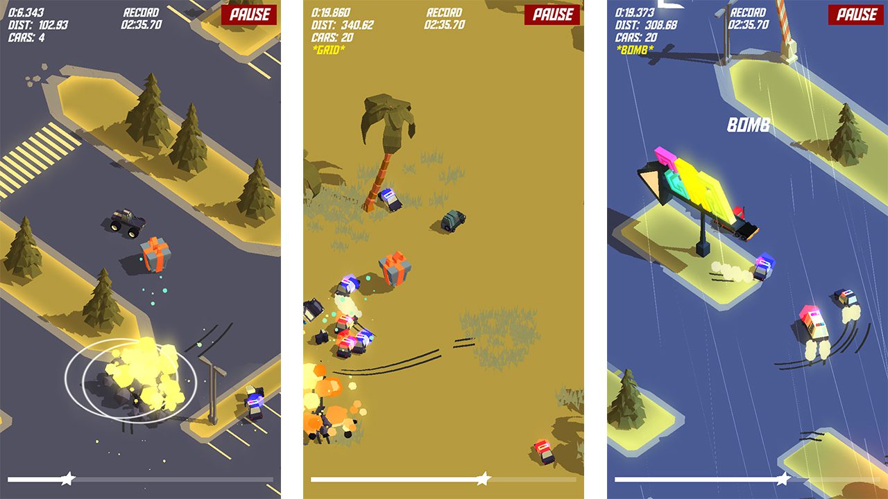 سناریویی که در شروع PAKO Forever با آن مواجه میشوید، پارکینگ یک مرکز خرید و فرار از دست ماشین پلیسهای قد و نیمقد است. سختی این سناریو در موانع آن است؛ ماشینهای پارکشده، نوشتههای فلزی بزرگ، بیلبوردها و درختهایی که اگر با آنها برخورد کنید کارتان تمام است. در این بازی اولین گیر افتادن با باخت مساوی است. باید به چپ و راست بپیچید، پلیسها را پشت سرتان جا بگذارید و کاری کنید که ماشینهایشان به هم برخورد کند و از این طریق امتیاز و جایزه بگیرید. حواستان باشد که جعبه کادوهای غولپیکر را با مانع اشتباه نگیرید و حتما دریافتشان کنید تا با دوبار ضربه روی صفحه، تواناییهای جالب بازی مثل آهسته شدن بازی، بمب پلیسکُش، لیزر و… برایتان فعال شود و راحتتر رکورد بزنید.
