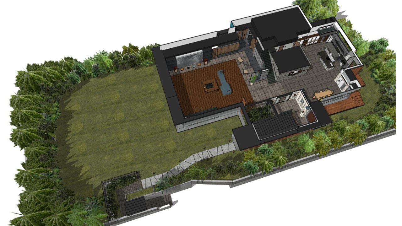 لی: تا جایی که میدانم، کارگردان بونگ یک معمار واقعی را هنگام نگارش فیلمنامه در ذهن داشت، اما این قضیه، طراحی خانه آقای پارک را تحت تأثیر قرار نداد. من واقعاً بلوکبندیای که در فیلمنامه کارگردان مشخص شده بود را اولویت قرار داده بودم. ما لحظات زیادی را به صحبت با هم حین نگاه کردن به نقشهی خانهای که او هنگام نوشتن فیلمنامه کشیده بود سپری کردیم.