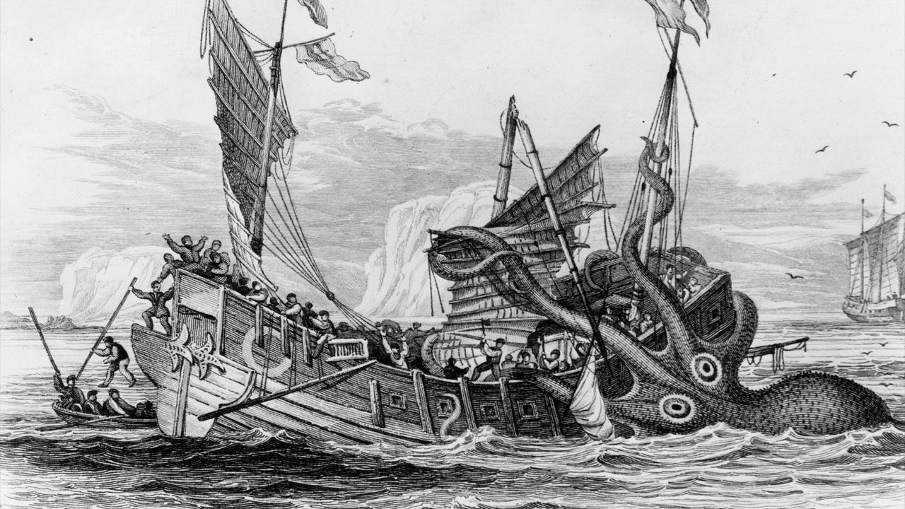 کراکن یک موجود هشتپا مانند و عظیمالجثه است که ریشهاش به افسانههای اسکاندیناوی بازمیگردد. عدهای از کارشناسان عقیده دارند ریشههای چنین افسانهای به گونههای غولپیکر ماهی مرکب بازمیگردد که بین ۱۳ تا ۱۵ متر رشد میکند.