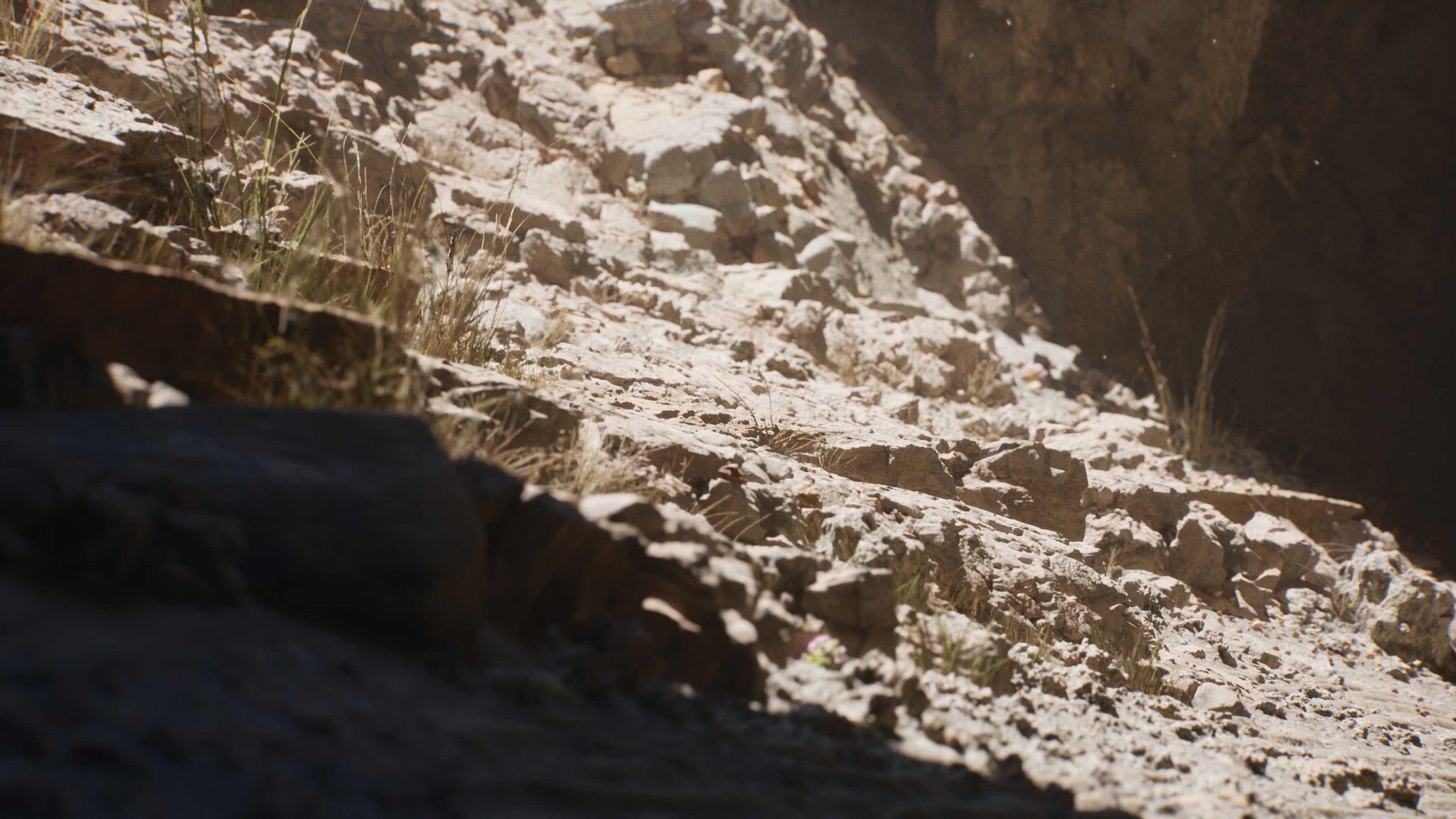 این دمو نمایشی شبیه نسخهای تازه از بازی Tomb Raider به نظر میرسید؛ شخصت اصلی بازی از سرزمین بیابانی با مقبرهای پر از مجسمههای قدیمی با جزئیات بینظیر و حجم بالای پولیگانها (Polygon) شروع میکند، از شکافهای طولانی با نورپردازی خیره کننده میگذرد و با دقت در فضاهای کوچک درون غار حرکت میکند؛ او سپس به بالای کوهی میرود و در پایان با پروازی از بالای شهری قدیمی، تواناییهای موتور جدید بازی در نمایش انیمیشنهای واقعگرایانه را به رخ میکشد.