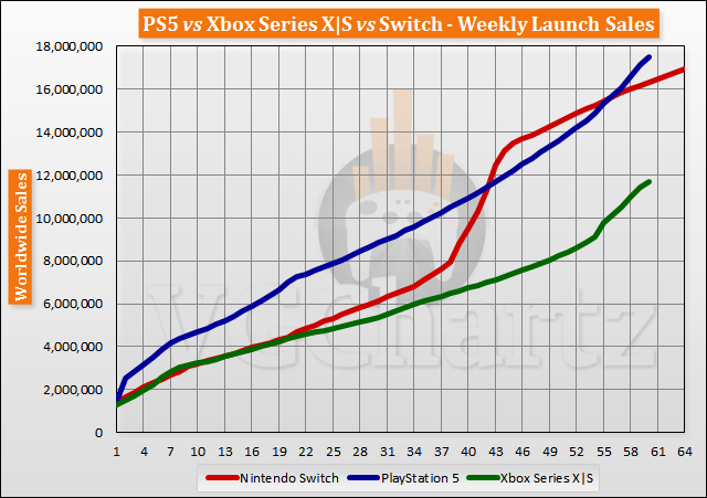 بنا بر گزارش VGChartz، در این مطلب مروری خواهیم داشت بر مقایسه آمار فروش پلی استیشن 5 در مقابل ایکس باکس سری ایکس – اس و همچنین کنسول دستی نینتندو سوییچ، تا ببینیم که پس از گذشتن ۶۰ هفته از آغاز فروش جهانی کنسولهای نسل نهمی، کدام یک از این سه دستگاه بیشترین خریدار را داشتهاند.