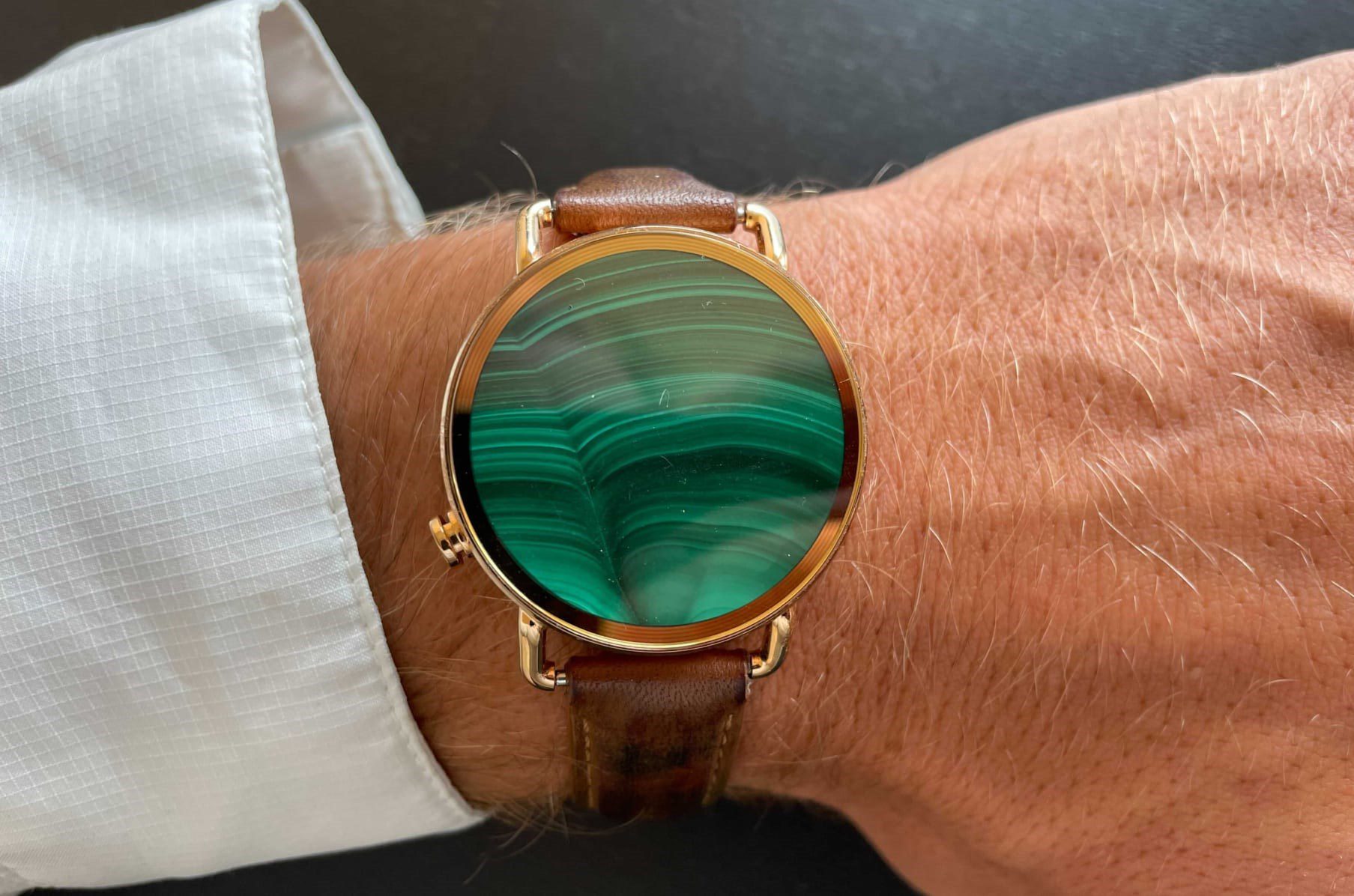در واقع با نمایش تصویر سنگهای قیمتی روی نمایشگر، جلوهی خاصی به این ساعت بخشیده است. شما میتوانید از بین گزینههای رز کوارتز، عقیق سفید، چشم ببر و آمتیست، یک سنگ را انتخاب کنید و برای بند ساعت از بین فولاد ضد زنگ، طلا یا نقره یکی را برگزینید. عمر باتری فقط چهار روز است و ۴۹۹ دلار قیمت دارد.