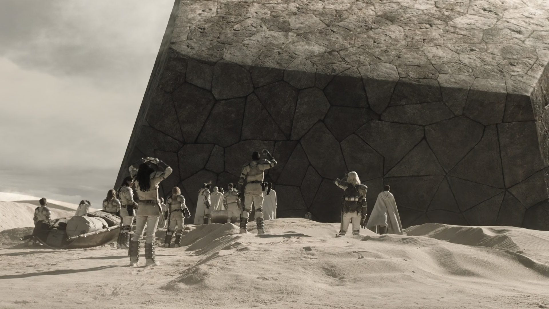 داستانی که آرون گازیکوفسکی (Prisoners)، شورانر سریال، با کمک ریدلی اسکات و دیگر کارگردانان این مجموعه روایت میکند، مملو از استعارهها، نمادها و مفاهیم عمیقی است که بار جدیت و فلسفی بودن سریال را بهشدت بالا میبرد. از همان آغاز داستان، Raised By Wolves به دنبال بلند کردن وزنههای بسیار سنگینی است؛ مسئلهی چگونگی تربیت کردن کودکان در دنیایی برهوت، با باور مطلق به علم و تواناییهای انسان، آن هم توسط رباتهایی که از درک احساسات انسانی عاجز هستند و خود به تدریج در هویت و چیستی خود تردید میکنند. با پیشرفت داستان، سریال همچنان با این مفاهیم کشتی میگیرد، اما تنها به این بسنده نمیکند. Raised By Wolves بیش از حد به دنبال پرداختن به مسائل غیرقطعی زندگی انسانها و دنیای امروز است؛ از گوشتخواری در برابر گیاهخواری گرفته تا احترام به تمام عقاید. این اشارات گاه آنقدر عریان و نخنما میشوند که گویا گازیکوفسکی خود در مقابل بیننده نشسته و دغدغههایی که ذهنش را مشغول کرده مستقیما از روی کاغذ میخواند. مشکل اینجاست که داستان صرفا این مفاهیم را اضافه میکند، اما به اندازهی کافی به آنها نمیپردازد. استعارههای داستان که به فرمهای مختلفی نشان داده میشوند، غالبا بسیار آشکار هستند؛ طراحی لباسهای شوالیهگونهی میثرایکها، ژست مسیحمانند مادر هنگام پرواز، معبد مرموزی که بهشدت یادآور کعبه است و… . با آن که شاید به نظر برسد این مقدار رو بازی کردن عامدانه و بخشی از هویت داستان است، اما Raised By Wolves تلاشی برای عمق بخشیدن و زمینهسازی برای آنها نمیکند و گویا صرفا ویترینی برای نمایش نمادهای جنجالبرانگیز و استعاری از دنیای امروز است. بسیار پیش میآید که سریال از یک ابزار یا اتفاق برای طرح یک سوال یا روایت داستان استفاده میکند، اما در ادامه به کلی آنها را رها کرده و امیدوار است که شما هم آنها را فراموش کرده باشید.