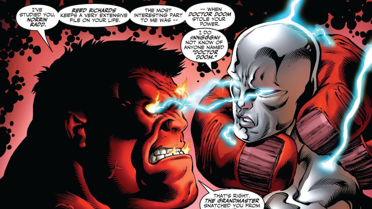 رد هالک در جریان یکی از ماجراجوییهایش مقابل سیلور سرفر (The Silver Surfer) قرار گرفت. منبع انرژی سیلور سرفر، قدرت کیهانی (Cosmic Power) بوده و در کمال ناباوری، رد هالک تمام آن را در همان ابتدای نبرد جلب کرد و باعث شد بیگانه فضایی تا یک قدمی مرگ برود.