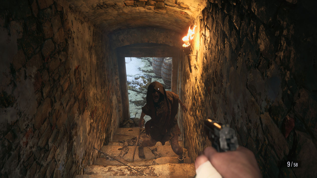 از طرفی دیگر، موسیقیهای متن RE Village، در بسیاری از مواقع پارادکسی داشتند که نهایتا منجر به ایجاد دلهرهی بیشتر در روند بازی میشد! در بسیاری از مواقع اگر موسیقی شروع به نواختن میکرد، باید میترسیدید، چرا که احتمالا سیل عظیمی از دشمنان یا شاید هم یک مینی باس در انتظار شماست؛ از طرفی دیگر، سکوت بازی در محیطهای پیچ در پیچ و تنگ و تاریک هم میتوانست نویدبخش یک جامپاسکیر بهیادماندنی باشد!