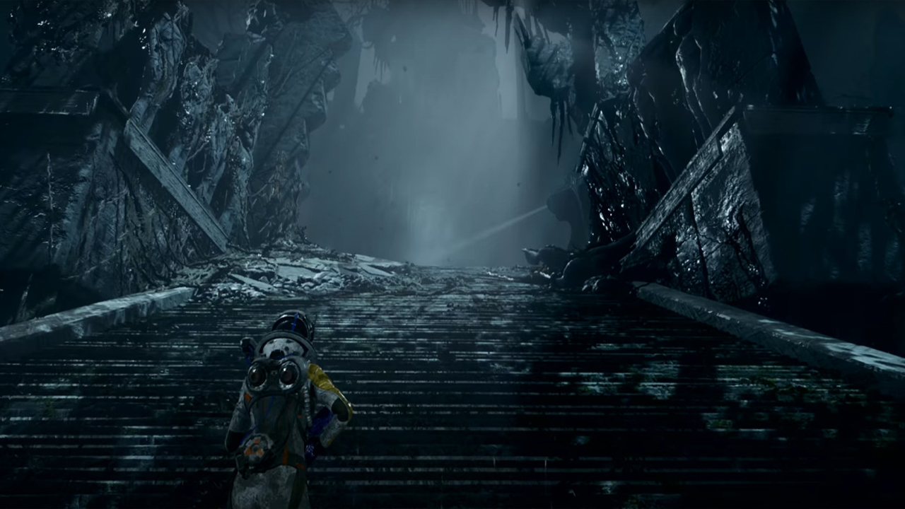 وقتی شخصیت اصلی از سقوط هواپیما جان سالم به در میبرد و خودش را روی سطح یک سیارهی بیگانه پیدا میکند و همزمان کنترل او را به دست میگیرید، قبل از هرچیزی این اتمسفر گیرای بازی و محیطهای بیگانهی آن با معماری غریبه و ناشناختهی آن است که خودنمایی میکند. در اینجا بازی Returnal به راحتی هرچه تمام توجه گیمرهایی را که عناوین ماجراجویانه و کشف محیطهای ناشناخته را دوست دارند، به خود جلب میکند. در ابتدا دروازههای بزرگ سنگی که به صورت خودکار باز میشوند و سپس مجسمههای سنگی بزرگی که از روی یک گونهی فضایی ساخته شدهاند که در بازی تحت عنوان گونهی زنو (Xeno-Type) شناخته میشوند. از جو و اتمسفر ساکن در محیط سیاره گرفته، تا طراحی قسمتهای مختلف محیط و نورپردازی فانتزی آن. بازی Returnal هرچقدر که در ظاهر جذاب به نظر میرسد، در باطن گویا یک کتاب ناشناخته به یک زبان بیگانه است که تنها راه سر در آوردن از رازهایش، ورق زدن و مرور تمامی صفحات آن است. به طوری که تقریبا هیچ راه دیگری به جز پیشروی در بازی و جستوجوی گوشه به گوشهی محیطهایش نخواهید داشت.