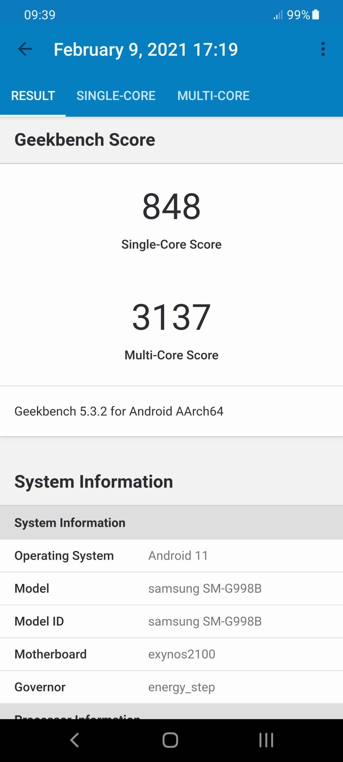 عملکرد سامسونگ Galaxy S21 Ultra چه در بنچمارکها و چه استفادهی روزمره، حیرتانگیز است. نتایج بنچمارک Geekbench 5 در تست تکهستهای حدود ۲۰ درصد و در تست چندهستهای، ۲۵ درصد بهبود عملکرد نسبت به گلکسی اس ۲۰ اولترا را نشان میدهند. نتایج این تست به همراه بنچمارکهای PCMark و Wild Life Stress Test را در ادامه میبینید.