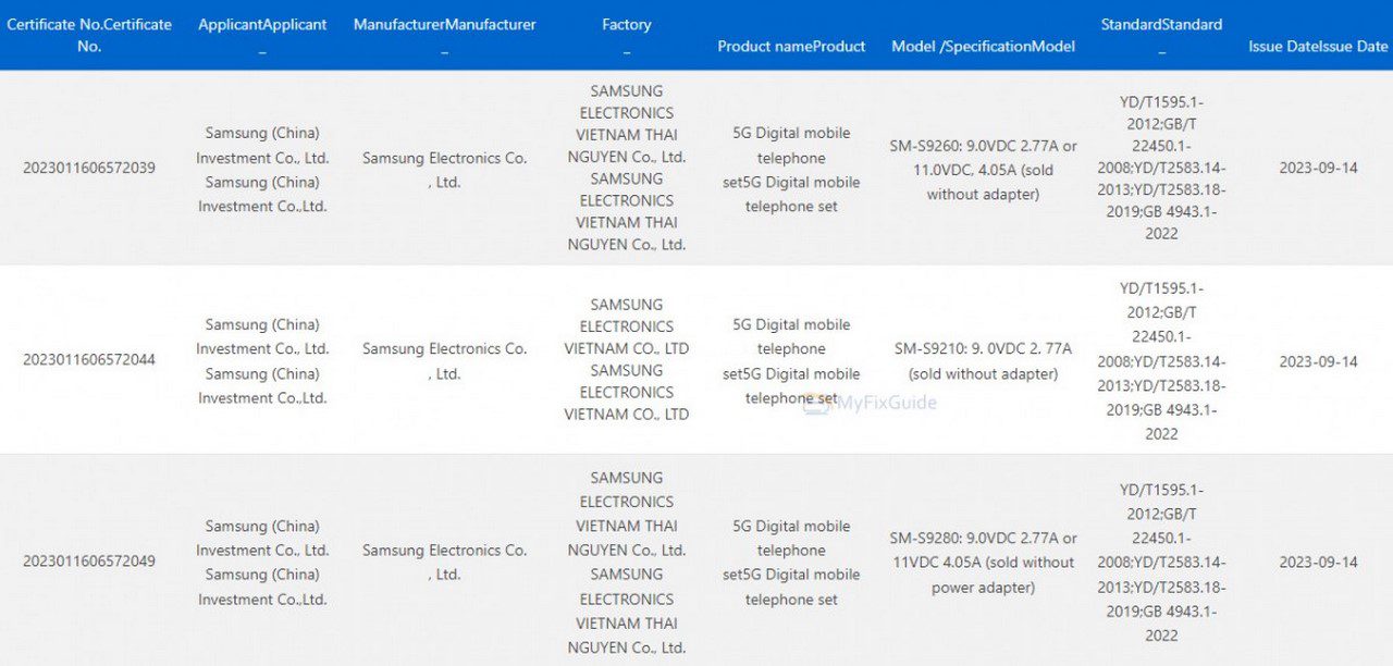 اما به تازگی اطلاعات جدیدی پیرامون پرچمداران مورد انتظار سامسونگ منتشر شده است. سری گلکسی اس ۲۴ به تازگی در پایگاه داده سازمان صدور گواهی 3C دیده شدهاند که مشخصات باتری و شارژر این محصولات هم به لطف آن لو رفت. از آن جایی که 3C یک وبسایت صدور گواهی است، اطلاعات منتشر شده از آن هم کاملاً موثق است و این یعنی این خبر به هیچ عنوان شایعه نیست.