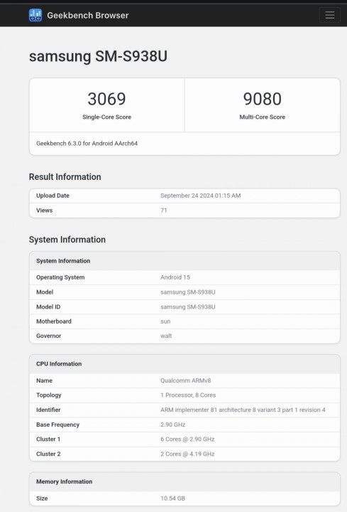 از این تصویر بنچمارک گیکبنچ دو چیز را میتوانیم به وضوح بفهمیم. اینکه گلکسی S25 اولترا اندروید 15 خواهد داشت و در یک مدل 12 گیگابایتی به بازار میآید. البته قطعا یک مدل 16 گیگابایتی از این گوشی را هم شاهد خواهیم بود.