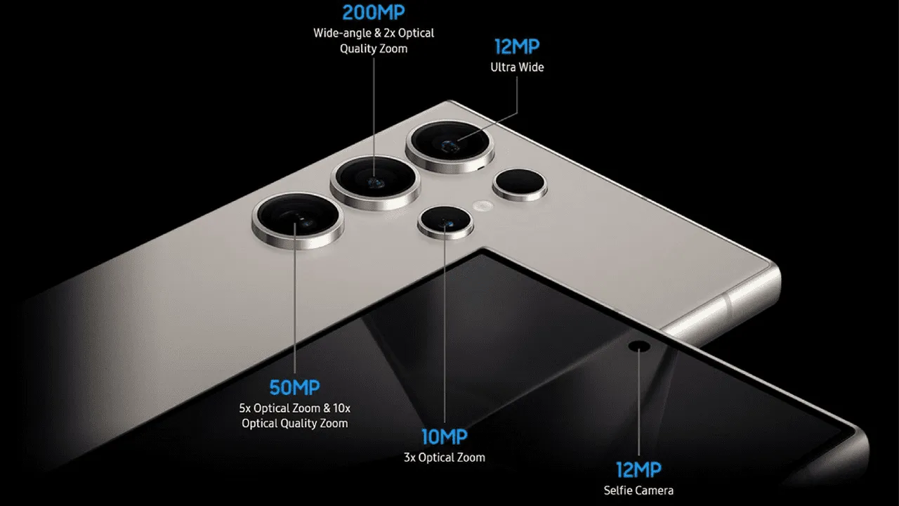 در حال حاضر گلکسی S24 اولترا از 4 دوربین بهره میبرد؛ 200 مگاپیکسلی اصلی، 50 مگاپیکسلی تلهفوتو با زوم 5 برابری اپتیکال، فوق عریض با زاویه دید 120 درجه و تلهفوتوی دیگر با زوم 3 برابری اپتیکال.
